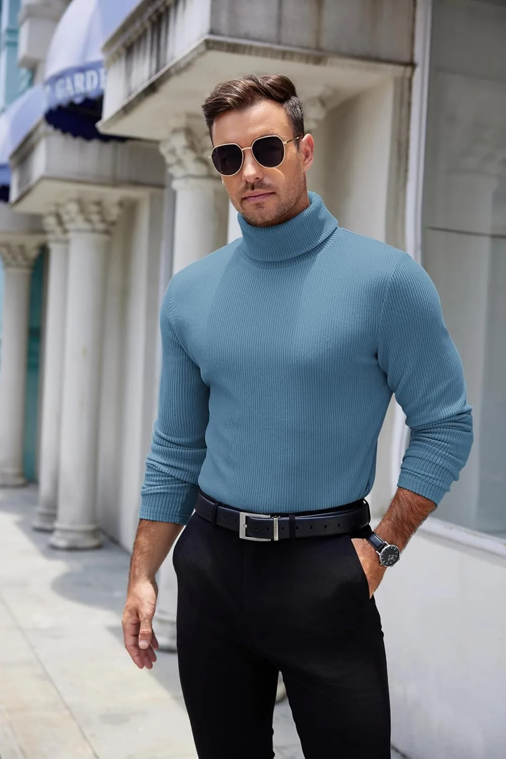 COOFANDY мужской ребристый водолазка