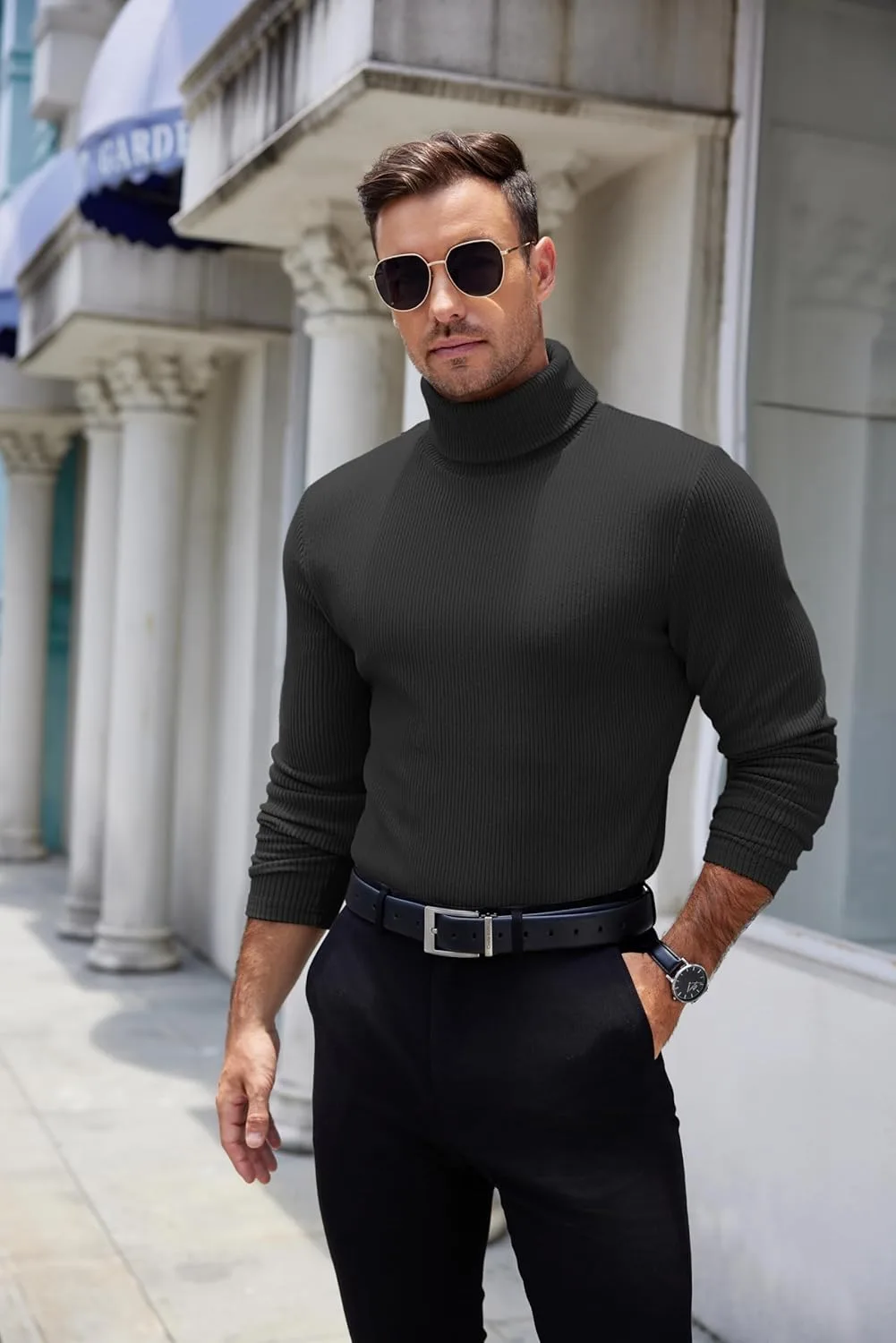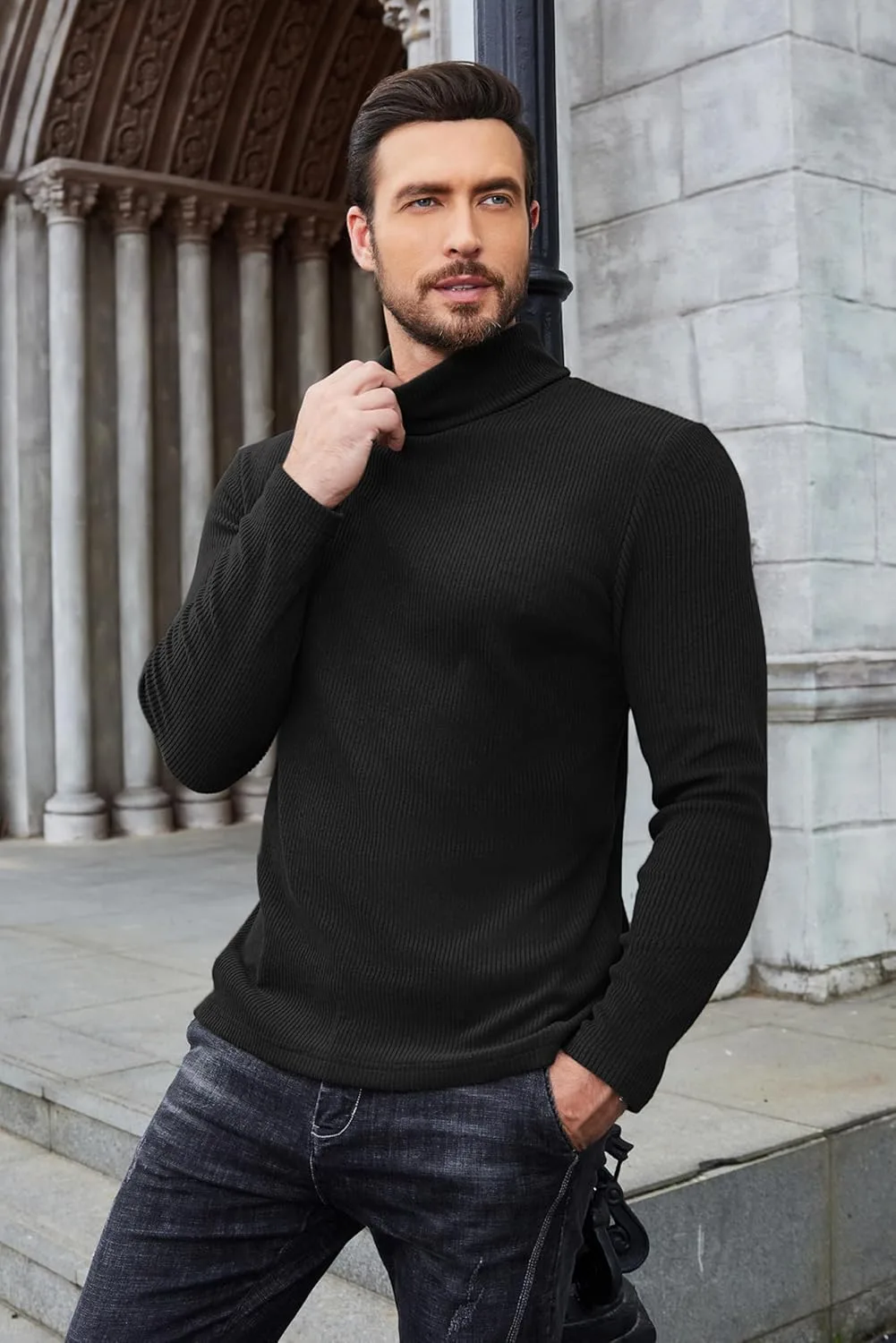 COOFANDY мужской ребристый водолазка
