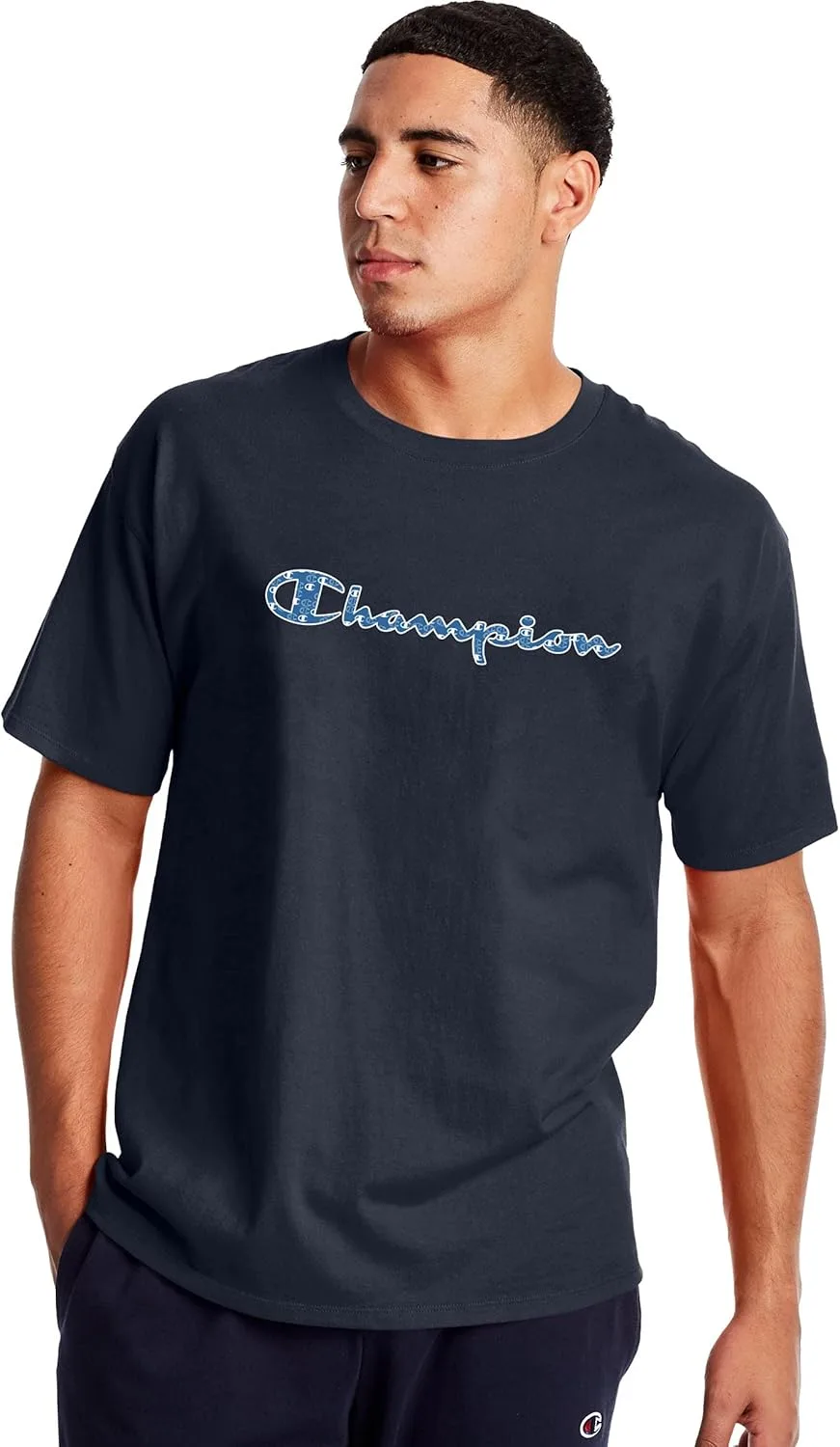ПОСАДКА - Мужская футболка стандартного кроя. ОЩУЩЕНИЯ - Комфортная ткань из смеси хлопка плотностью 5,5 унций, полученная методом кольцевого прядения для придания мягкости. ГРАФИЧЕСКИЙ ЭФФЕКТ - Классический логотип, выполненный в виде рукописного шрифта, заполнен различными принтами. НАЙДИ С — Знаменитая нашивка с логотипом C на рукаве. ПРОСТОЙ УХОД - Мужскую футболку можно стирать в стиральной машине в холодной воде с вещами схожих цветов, что упрощает уход и снижает энергопотребление.