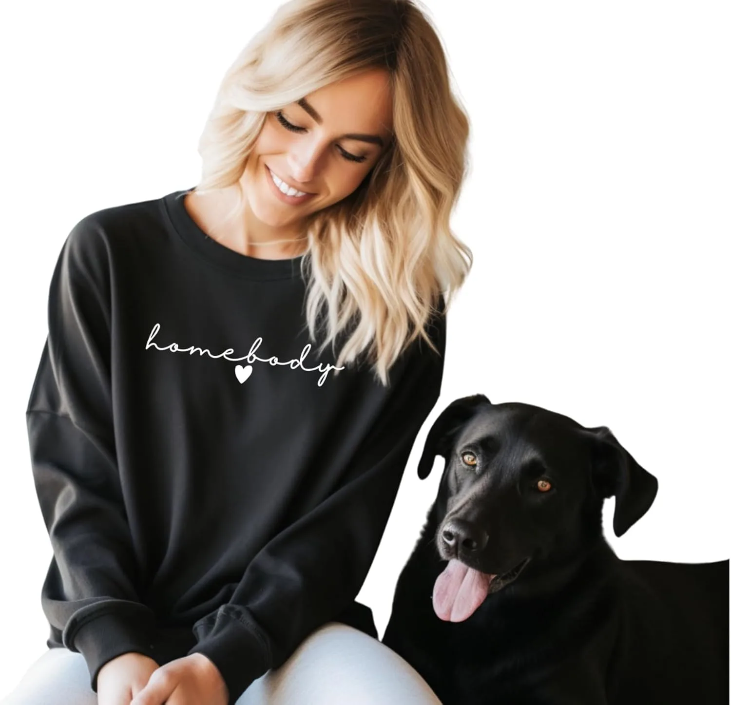 Свитшот Homebody с круглым вырезом - унисекс. Пожалуйста, сверяйтесь с таблицей размеров на фотографиях при заказе. Свитшот будет изготовлен из смеси 50% хлопка и 50% полиэстера или 100% хлопка в зависимости от наличия. Доступные цвета: черный, белый, серый, красный с черным или красный с белым. Изделие ручной работы, поэтому каждое может немного отличаться!