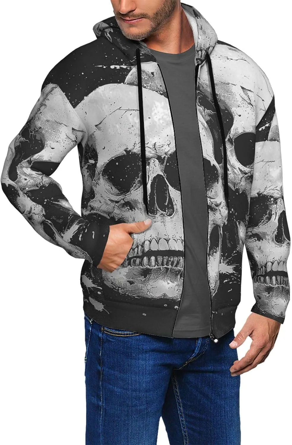 Мужская 3d худи с капюшоном на молнии - Skulls