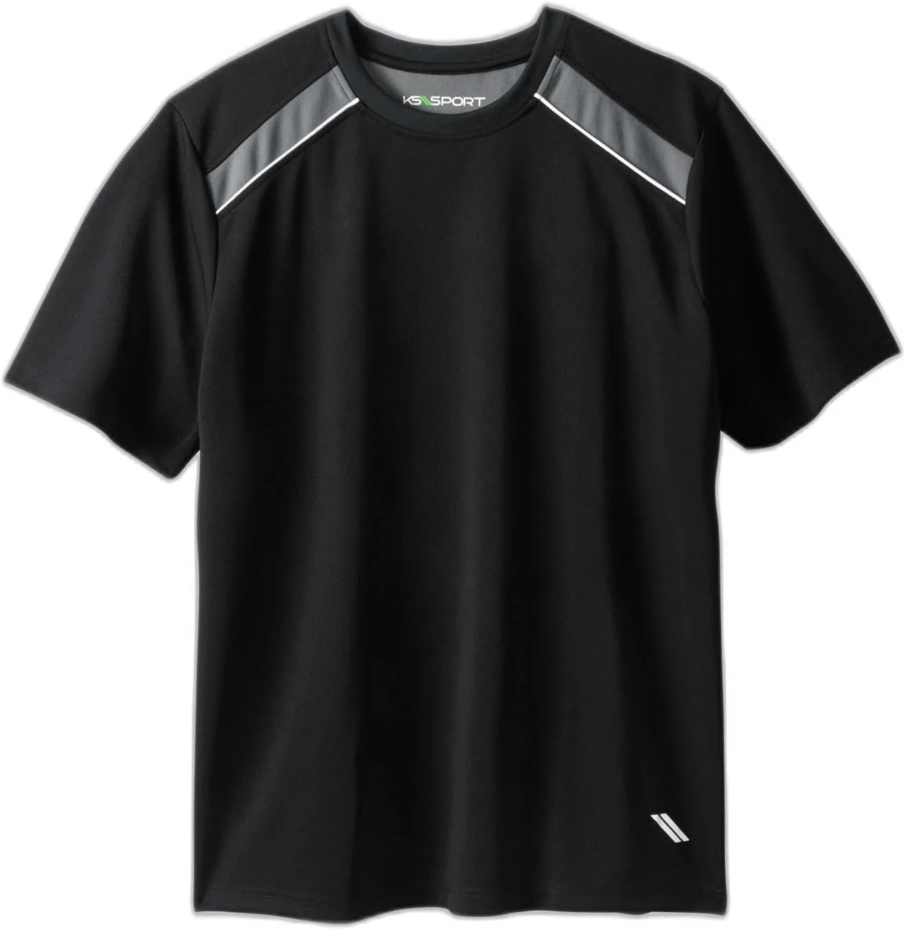 Всё дело в названии. Начните двигаться в этой футболке KS Sport Power Tee, изготовленной из влагоотводящего материала, который контролирует влажность и помогает вам чувствовать себя сухо, прохладно и уверенно в течение дня. Свободный крой br>Круглый вырез br>Контрастные детали на плечах и кокетке br>Влагоотводящие свойства br>Длина для больших размеров: около 32 дюймов; длина для высоких размеров: около 34 дюймов br>Полиэстер br>Машинная стирка br>Импортный товар