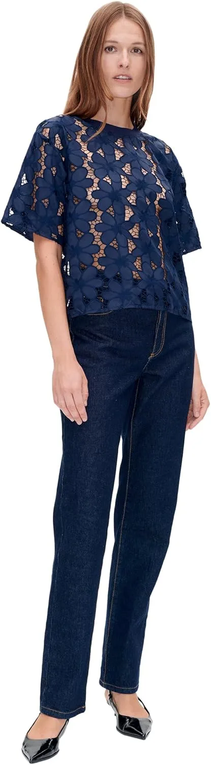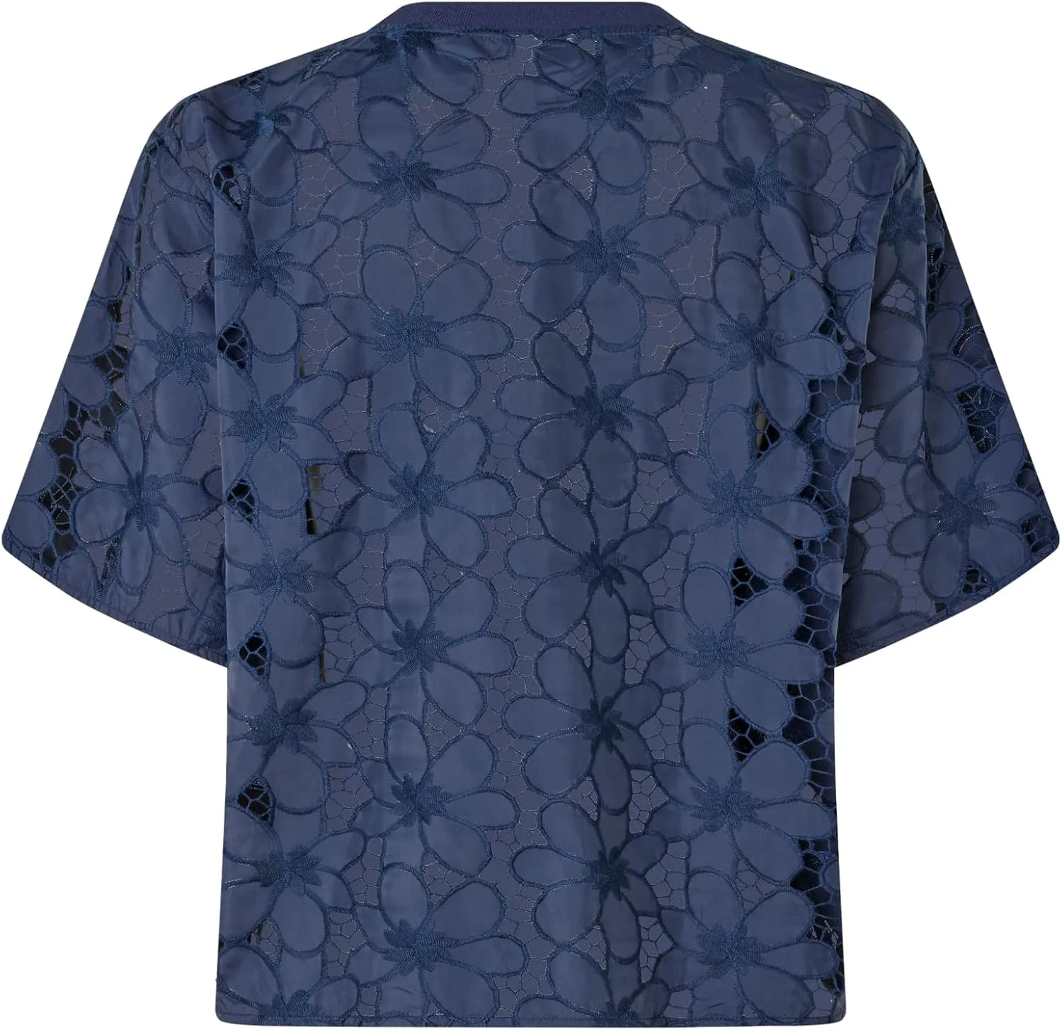 Эта футболка с цветочным кружевом и круглым вырезом горловины. Футболка без подкладки. - Свободный крой - Эта вещь из нашей коллекции Pre-Spring 2025.