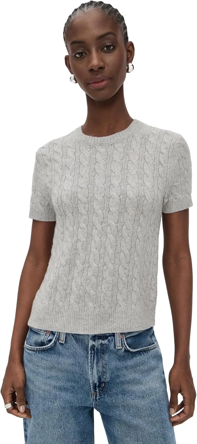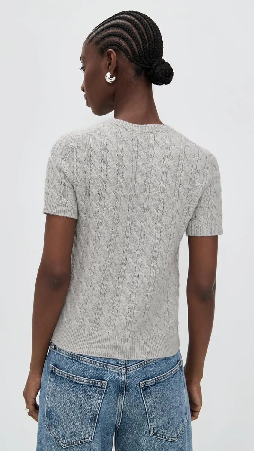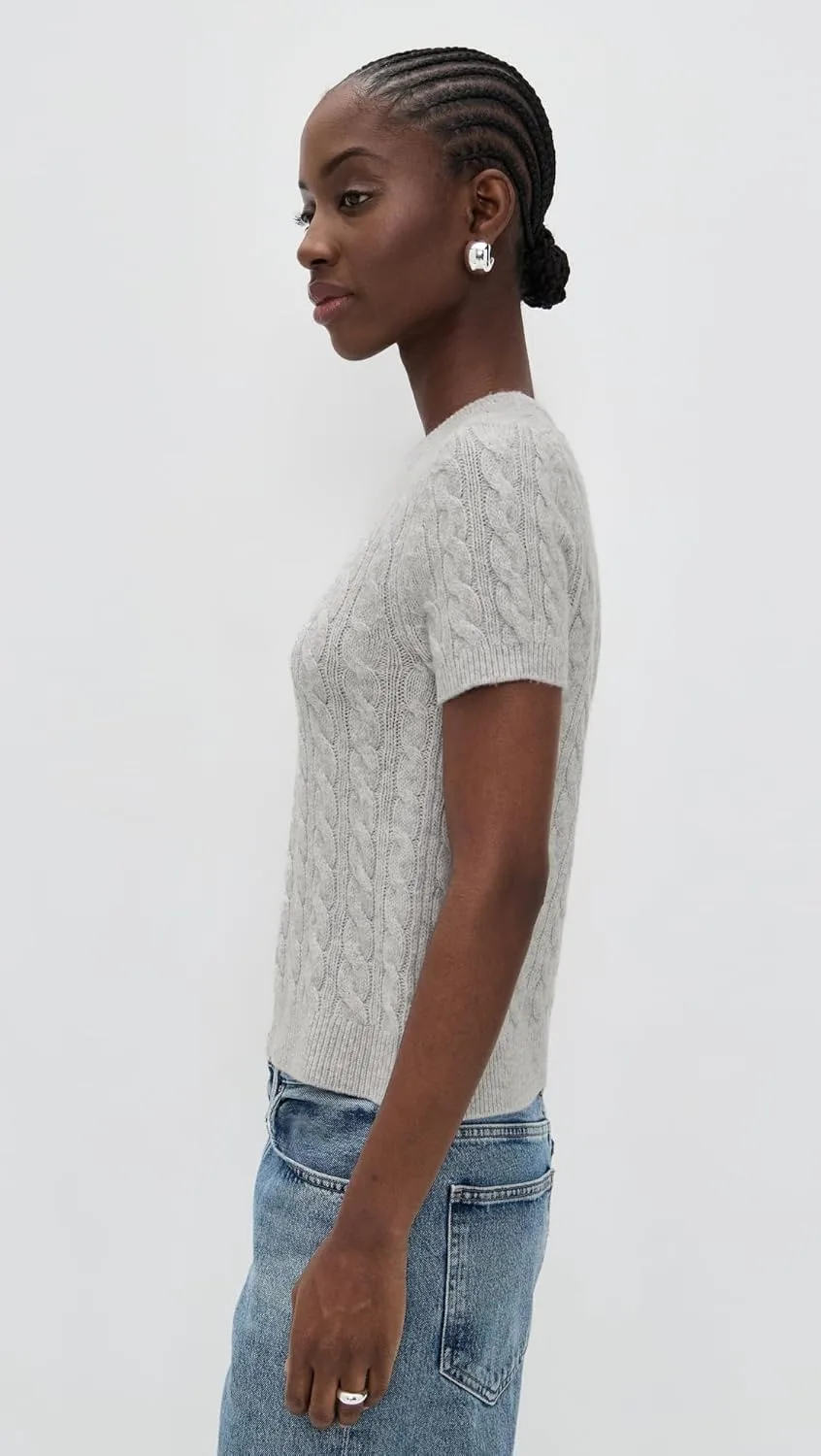 Этот свитер с короткими рукавами и круглым вырезом, сочетающий в себе элементы свитера и футболки, связан косами из роскошной смеси шерсти и кашемира.