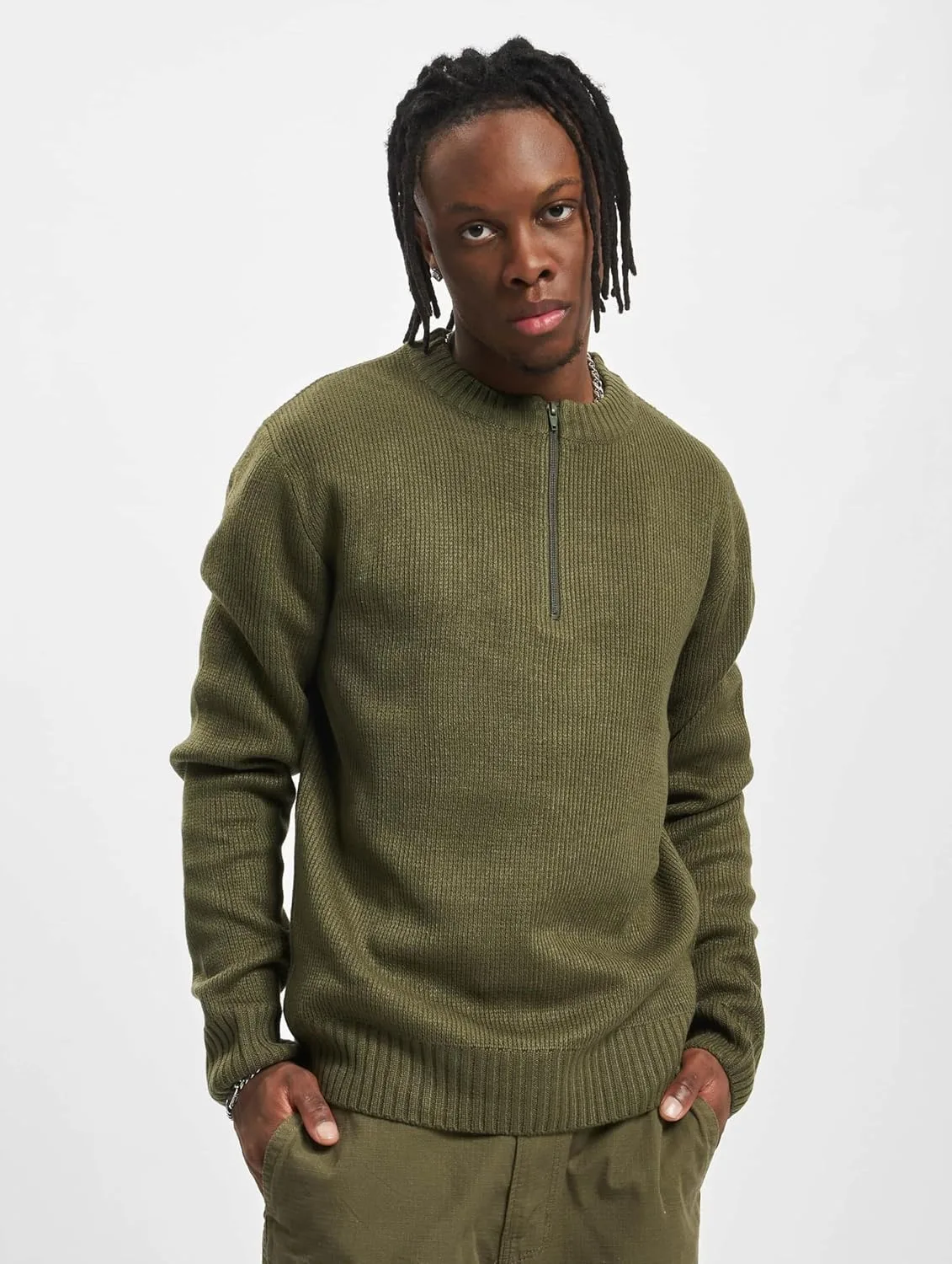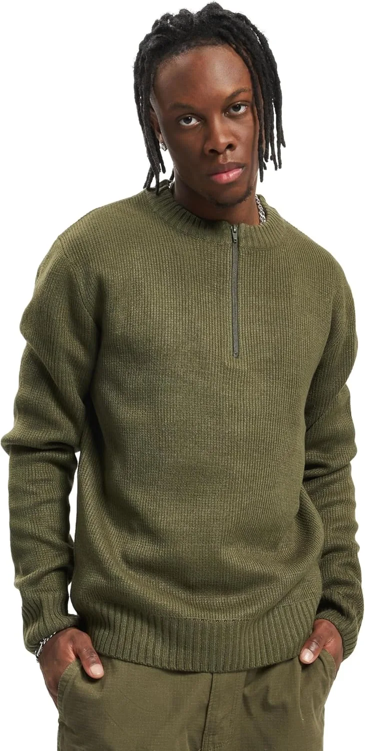 Классический джемпер с круглым вырезом и застежкой-молнией / дизайн по образцу швейцарской армейской формы / мягкий, удобный в носке, не натирает / трикотажные манжеты на рукавах и подоле