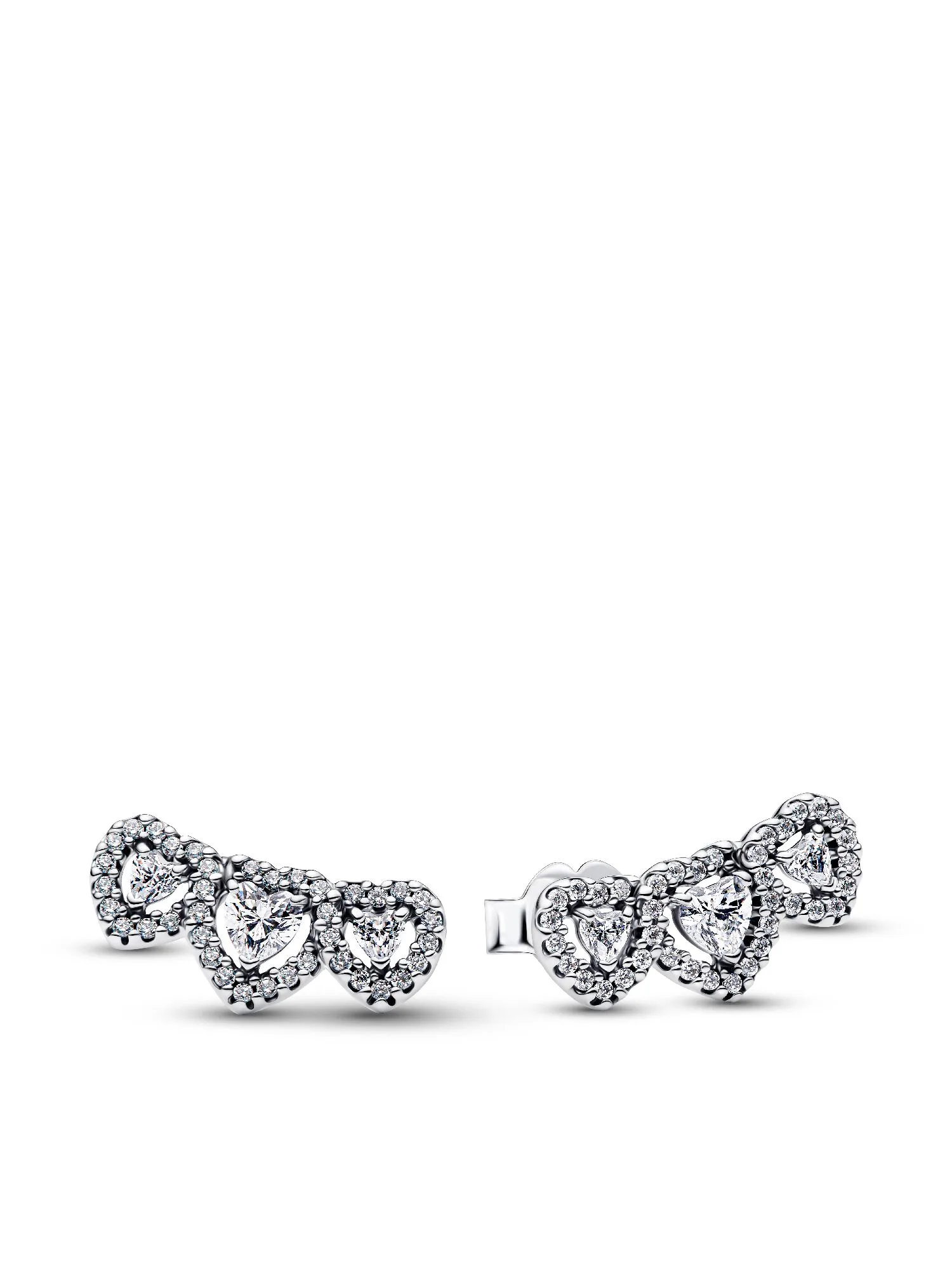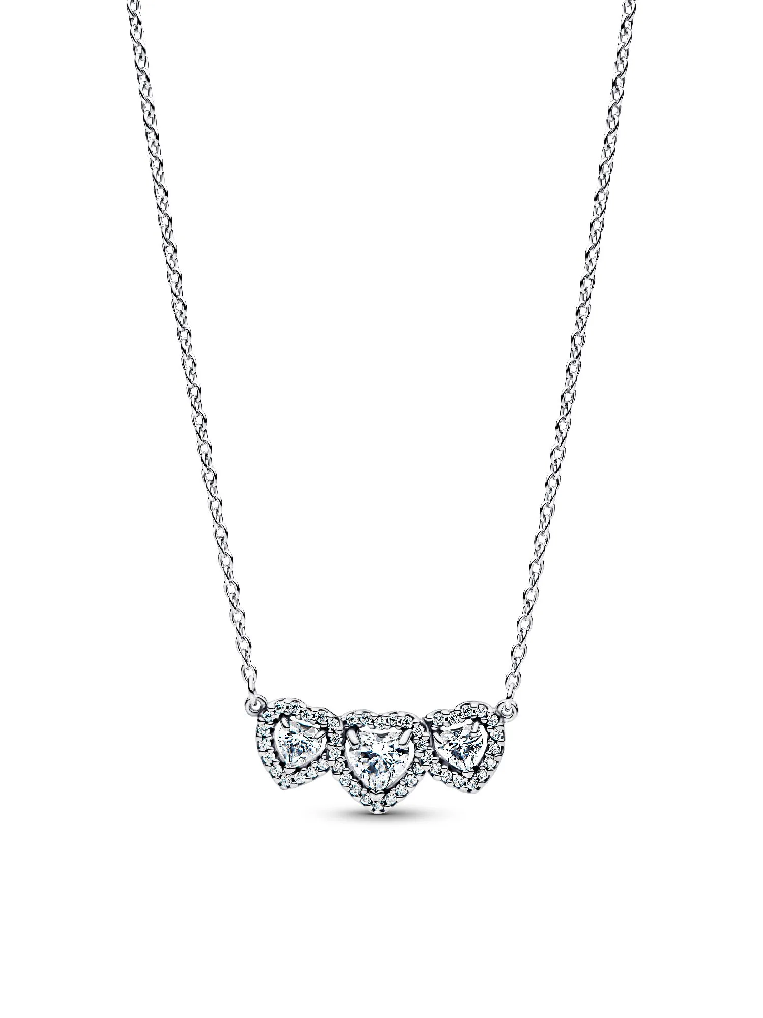 Отпразднуйте все виды любви. Этот подарочный набор из стерлингового серебра включает в себя колье с тремя сердцами, регулируемое по длине в трех положениях, и соответствующие серьги-гвоздики, украшенные сверкающими ореолами из прозрачных кубических цирконий.