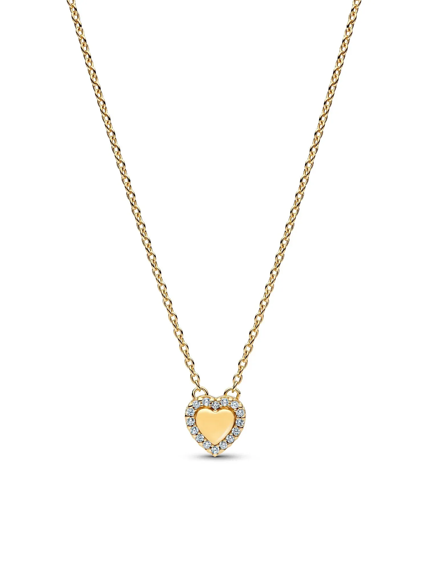 Запечатлейте важный момент. Этот подарочный набор с покрытием из 14-каратного золота включает в себя колье в форме сердца с нимбом и местом для гравировки имени или даты, а также сверкающие серьги-гвоздики, украшенные прозрачными кубическими циркониями.