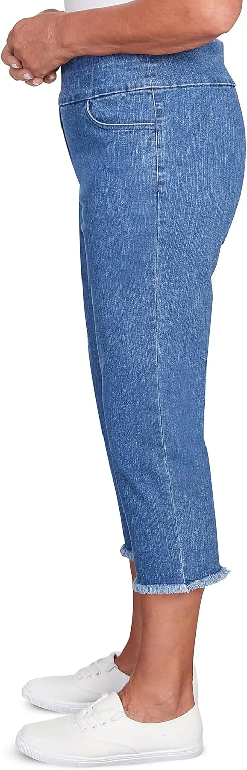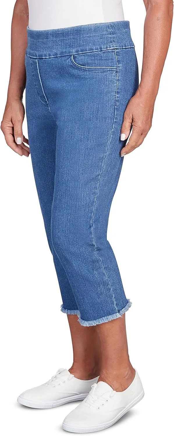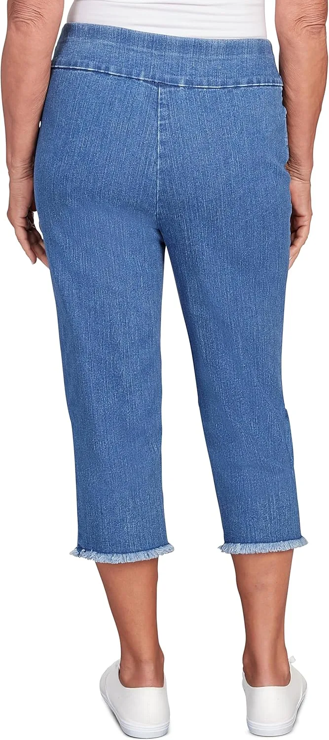 Эти джинсовые капри с бахромой — модный и удобный вариант. Изготовленные из очень эластичного денима, они обеспечивают привлекательную посадку и максимальную свободу движений. Бахрома добавляет игривости, делая эти капри идеальными для повседневного, но стильного образа.