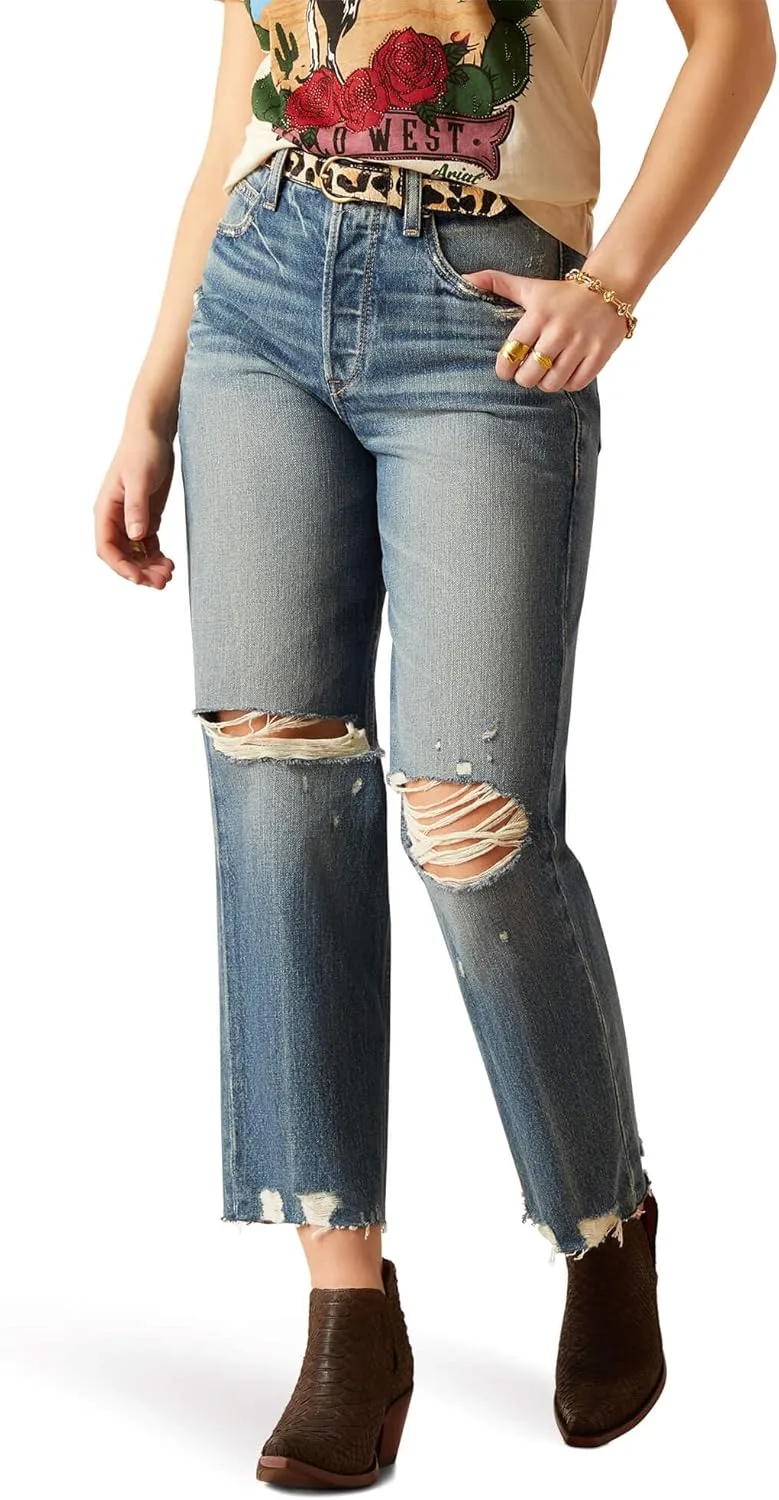 Эти джинсы из 100% хлопка, не содержащие эластичных волокон, — стильная интерпретация классики, отличающаяся невероятной универсальностью. Благодаря продуманным потертостям и вышитой надписи «Yee-haw!!» над задним карманом, они добавят немного вестерна в ваш повседневный гардероб. Укороченный низ доходит до щиколотки, так что вы сможете продемонстрировать свои любимые ботильоны.