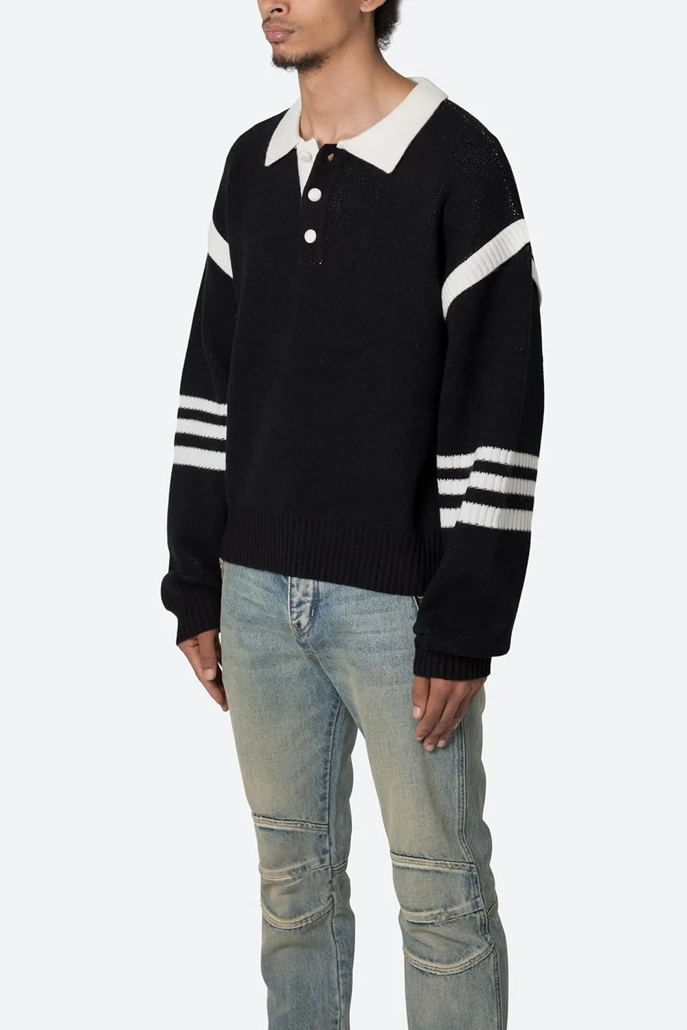 Вязаный свитер Polo Knit Sweater — это свитер, связанный на заказ из смесовой хлопковой пряжи.
