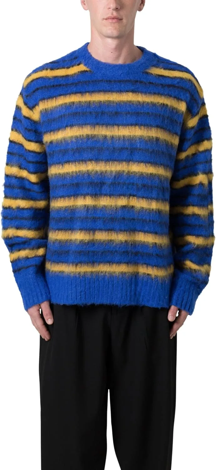 Полосатый мохеровый свитер — это вязаный свитер в полоску, изготовленный из синтетической пряжи, имеющий стандартный крой и мягкую, ворсистую внешнюю поверхность.