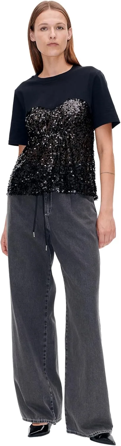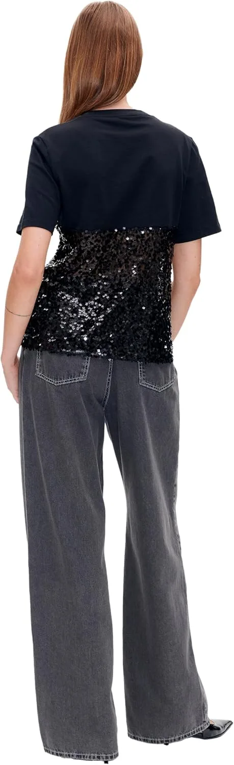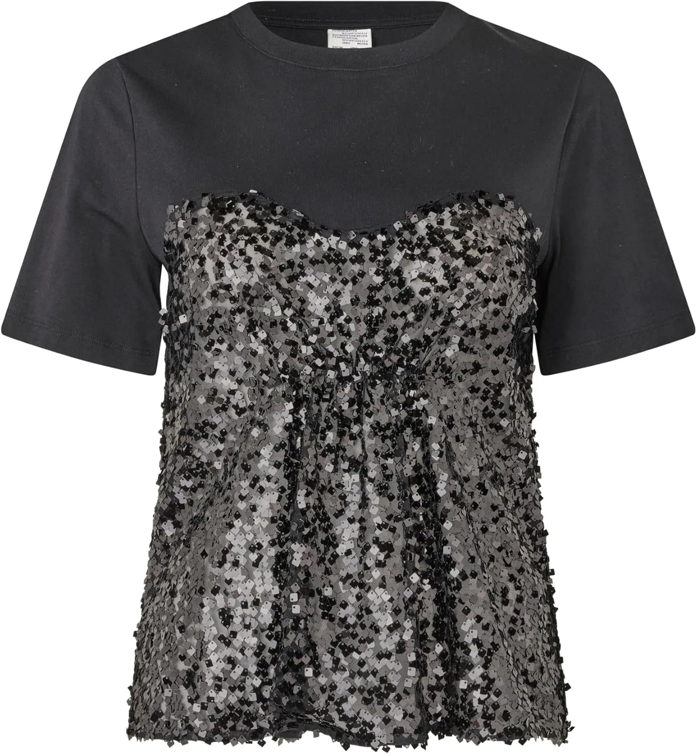 Эта футболка украшена пайетками по всей поверхности и имеет полупрозрачную отделку. - Стандартный крой - Изготовлена из переработанного полиэстера - Эта модель из нашей коллекции Pre-Spring 2025