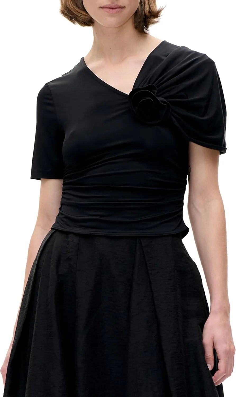 Топ Jansje — это эффектная вещь с красивой розочкой на груди. Топ с короткими рукавами имеет облегающий силуэт и эффектные сборки на плечах и по бокам, что делает его невероятно стильным. Сочетайте его с джинсами и туфлями на каблуках для элегантного повседневного образа.
