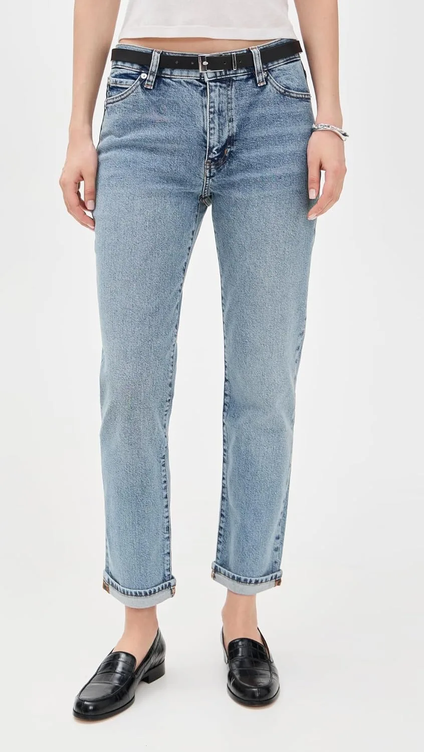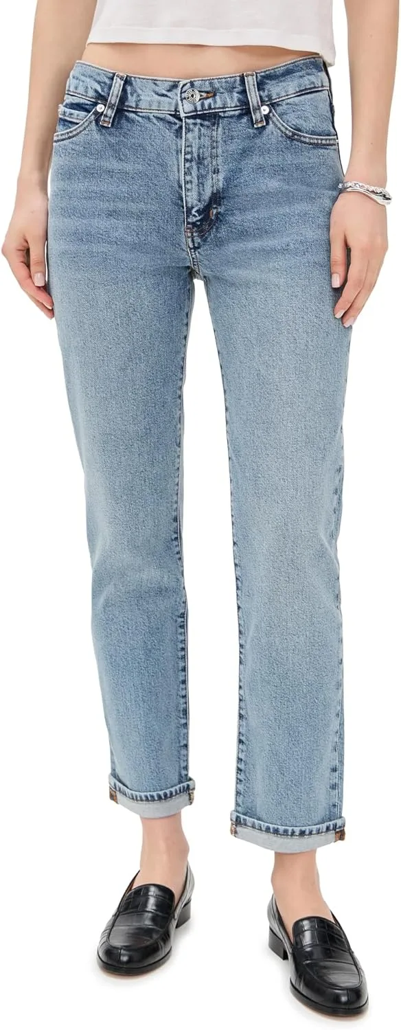 Размер больше стандартного; рекомендуется выбирать на размер меньше. Модель имеет среднюю посадку и прямой крой. Длина внутреннего шва до щиколотки. Эластичный деним имеет ворсистую текстуру средней плотности. Материал: Джинсовая ткань средней плотности с эластичными волокнами Высота посадки: 25 см, Длина внутреннего шва: 70 см, Ширина штанины внизу: 36 см 5-карманный дизайн