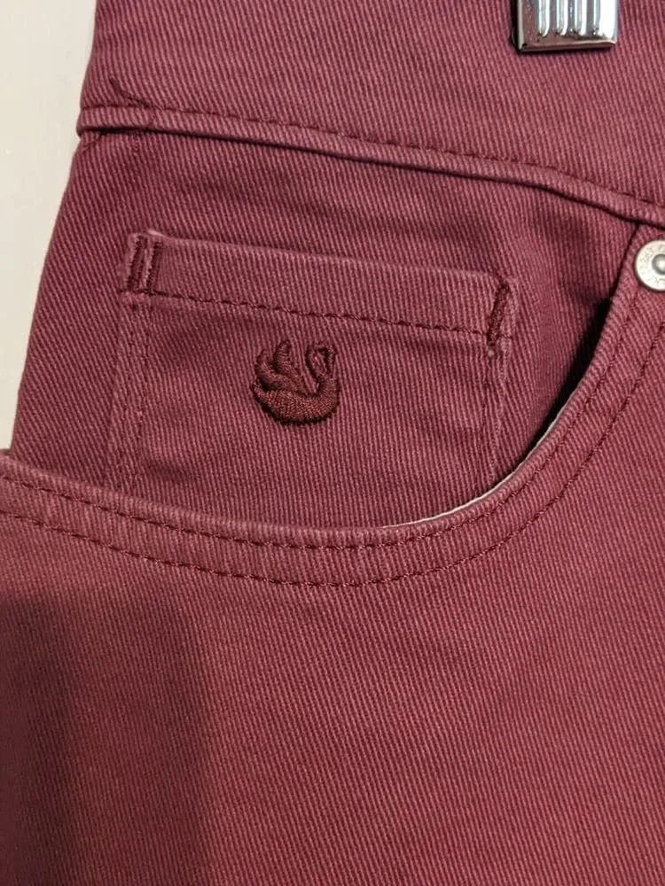 Зауженный силуэт. Застежка на пуговицы спереди. Классический фасон с пятью карманами. Высокая посадка. Таблица размеров (дюймы): 4 = 68 см | 8 = 74 см | 10 = 76 см | 12 = 79 см | 14 = 89 см | 16 = 84 см | 18 = 86 см. Длина внутреннего шва (дюймы): 59 см. Машинная стирка в холодной воде с вещами схожих цветов.