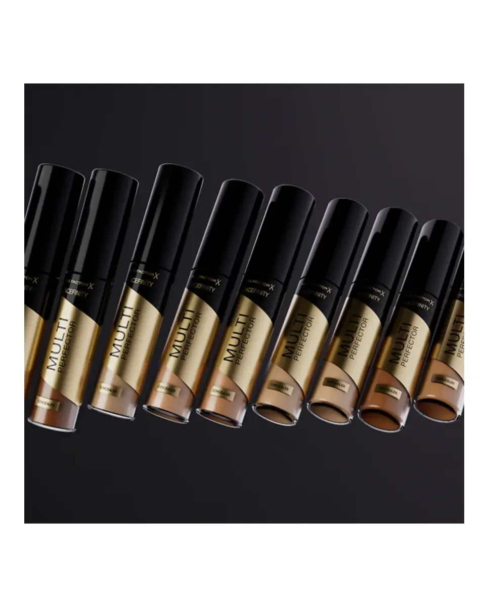 Маскирует и осветляет темные круги под глазами, маскирует пятна и выравнивает тон кожи с помощью нового жидкого корректора Multi Perfector от Max Factor. Его большой аппликатор с встроенным резервуаром позволяет взять точное количество продукта и нанести его там, где это необходимо, просто и удобно. Формула со средней степенью покрытия идеально сливается с кожей, создавая более гладкий и ровный тон, а также содержит светоотражающие пигменты для освещения лица, увлажняя его до 24 часов. Формула легкая, водостойкая, не жирная и не скатывается. Кроме того, продукт полностью веганский, чистый (clean), а упаковка переработана и пригодна для утилизации. Если вы хотите добиться безупречного результата благодаря быстрой и простой одношаговой аппликации, это ваш идеальный продукт. Доступен в большом количестве оттенков для любого типа кожи.