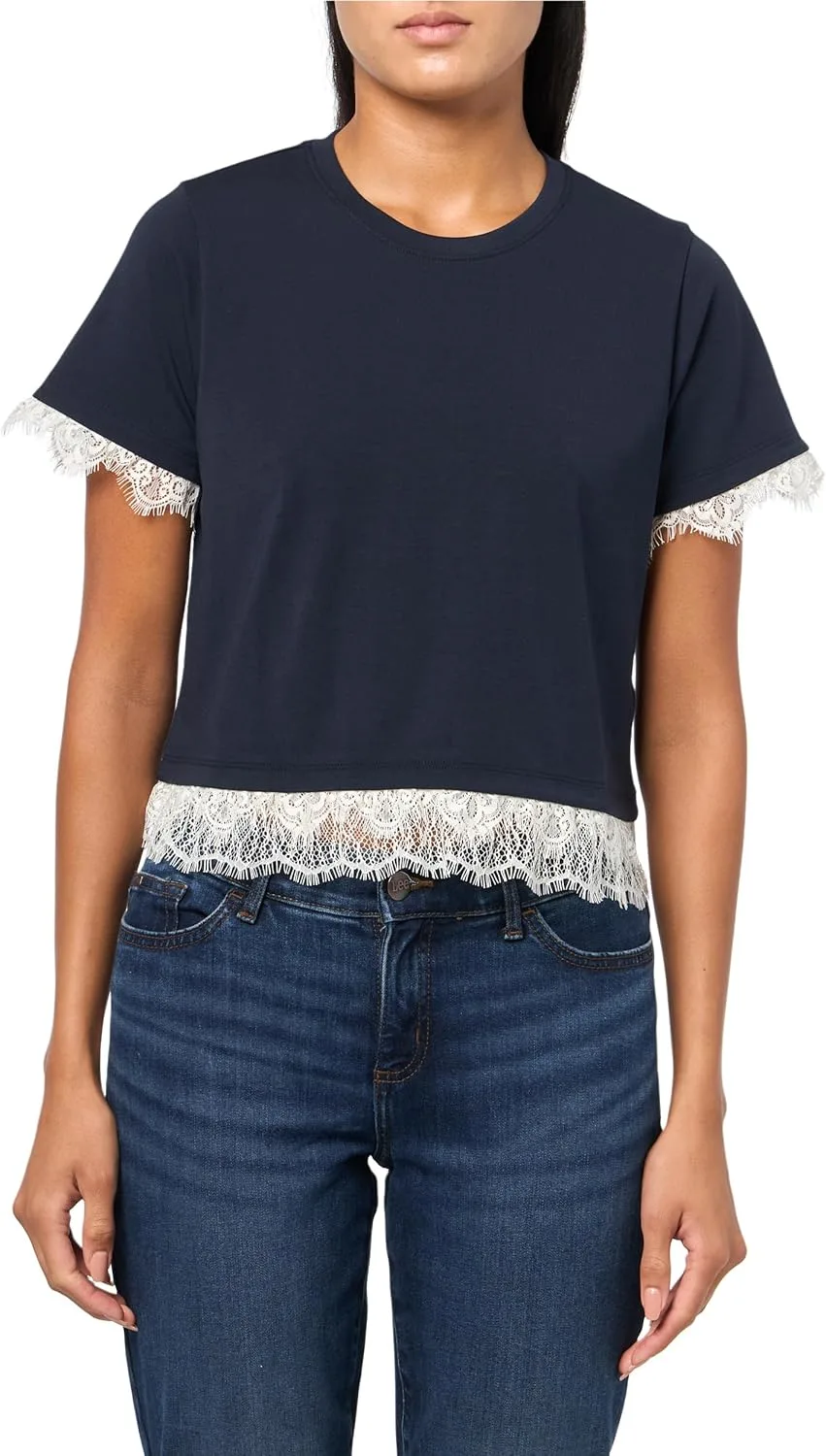 Хлопок, укороченный крой, рукава с кружевной отделкой.