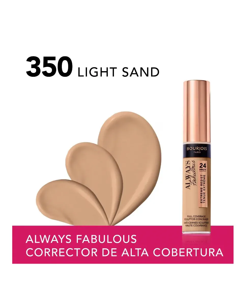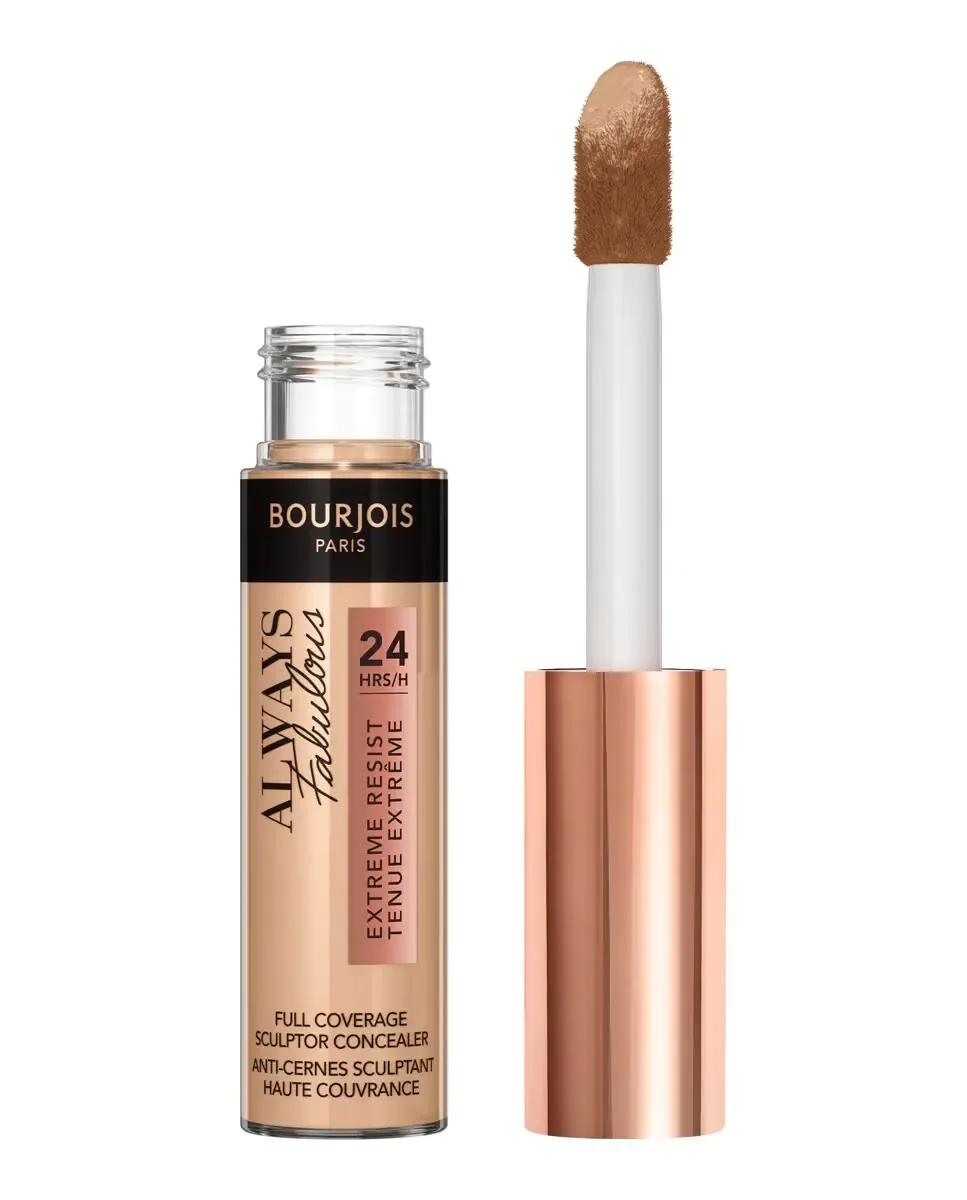 Always Fabulous Concealer от Bourjois - это корректор с высокой степенью покрытия, с кремовой текстурой и матовым финишем, который держится до 24 часов. Его увлажняющая формула, обогащенная гиалуроновой кислотой, устраняет недостатки и темные круги, оставляя кожу полностью увлажненной. Этот универсальный корректор 3 в 1 можно использовать различными способами: как классический корректор для маскировки несовершенств, как контур для моделирования и как хайлайтер для выделения черт лица.