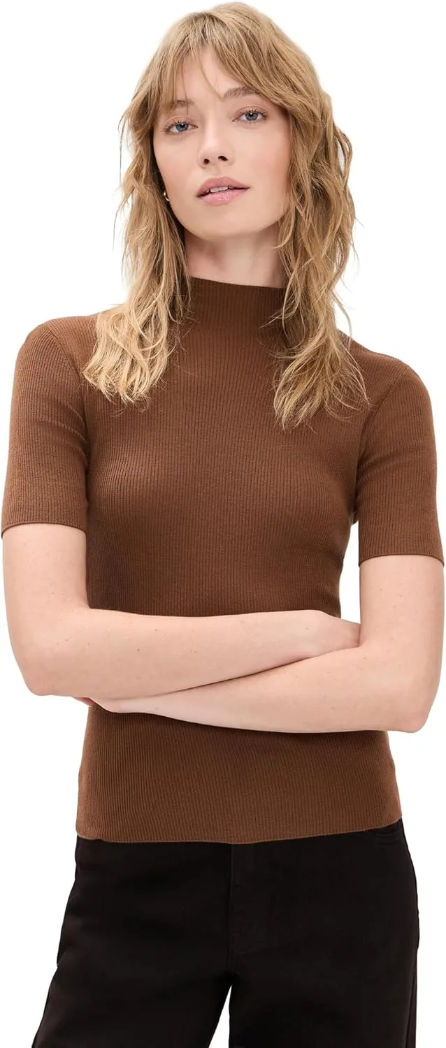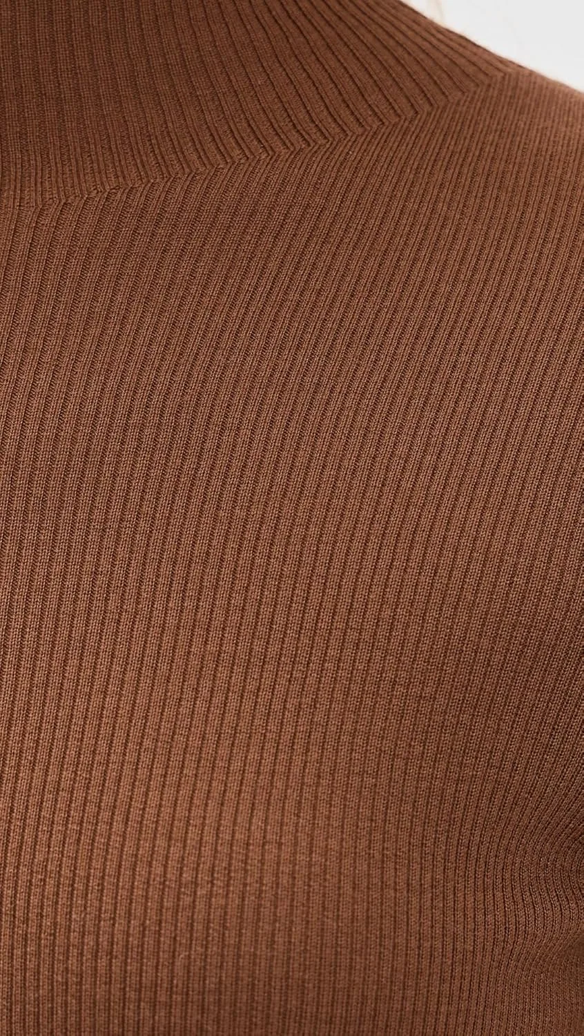 Наш классический свитер Leenda с воротником-стойкой и полосатым узором 2х2.