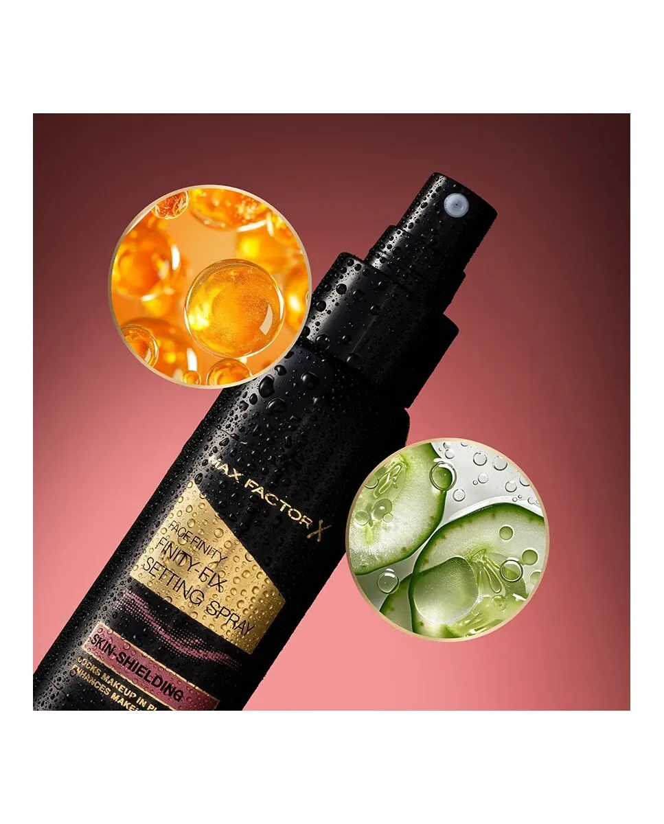 Спрей для закрепления макияжа Facefinity Finity-Fix от Max Factor - это продукт, который удерживает макияж на месте в течение всего дня. Его микрочастичная формула в виде тумана обеспечивает матовый финиш. Содержит витамин C, который оказывает антиоксидантное действие и защищает кожу от загрязнений. Быстро высыхает и помогает поддерживать кожу увлажненной, усиливая интенсивность теней, румян и хайлайтера. Кроме того, имеет освежающий аромат огурца. Этот спрей можно использовать как подготовительную базу перед макияжем, как фиксатор по завершении нанесения или для освежения кожи в течение дня. Его формула устойчива к поту, влаге и переносу, подходит для всех типов кожи и для любого пола.