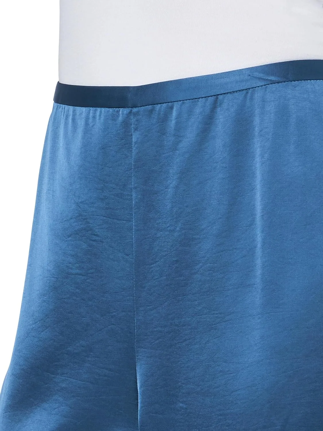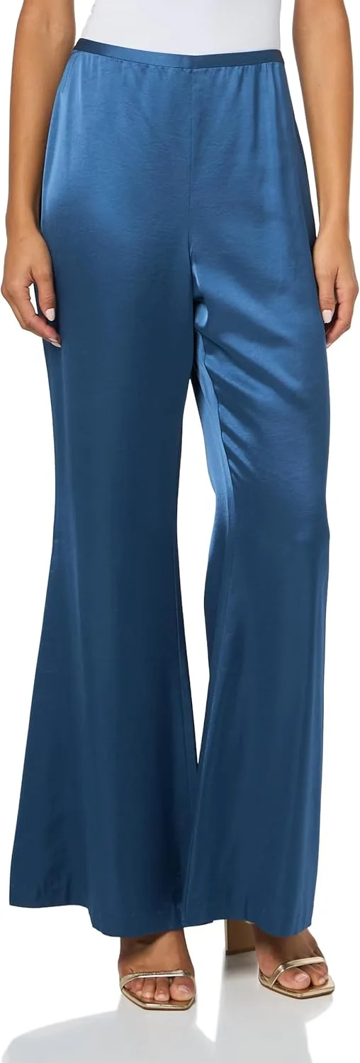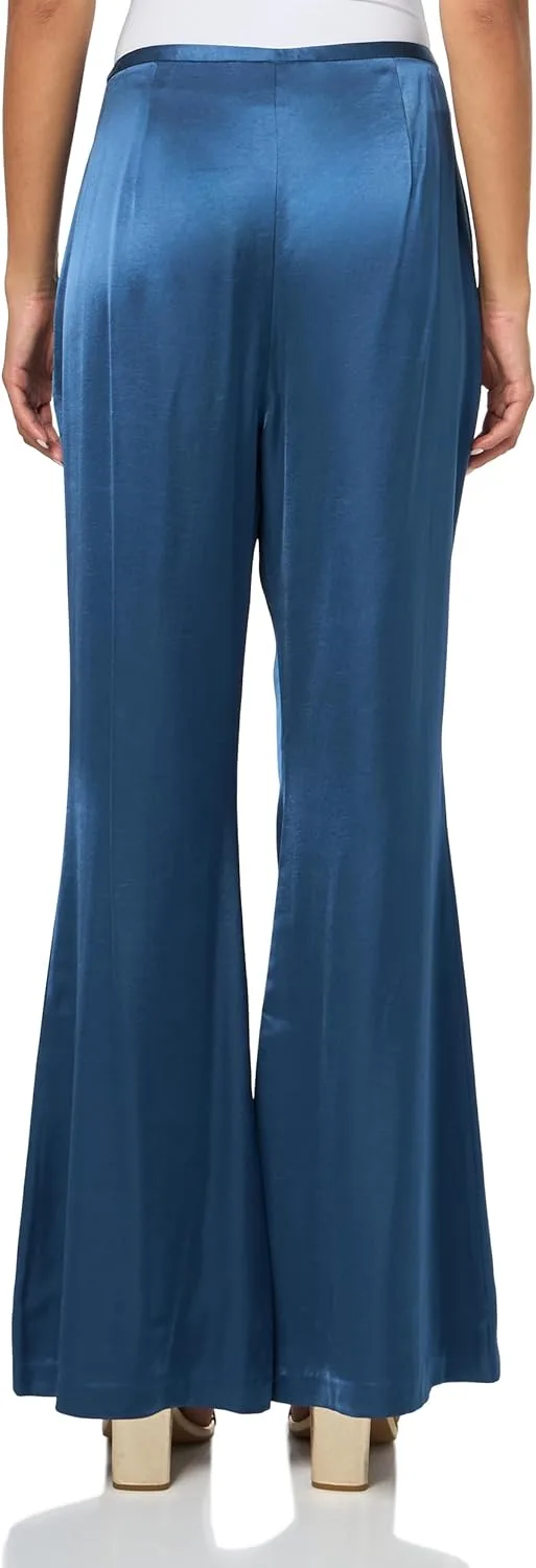 Атласные брюки-клеш полной длины с плоской передней и боковой молнией.