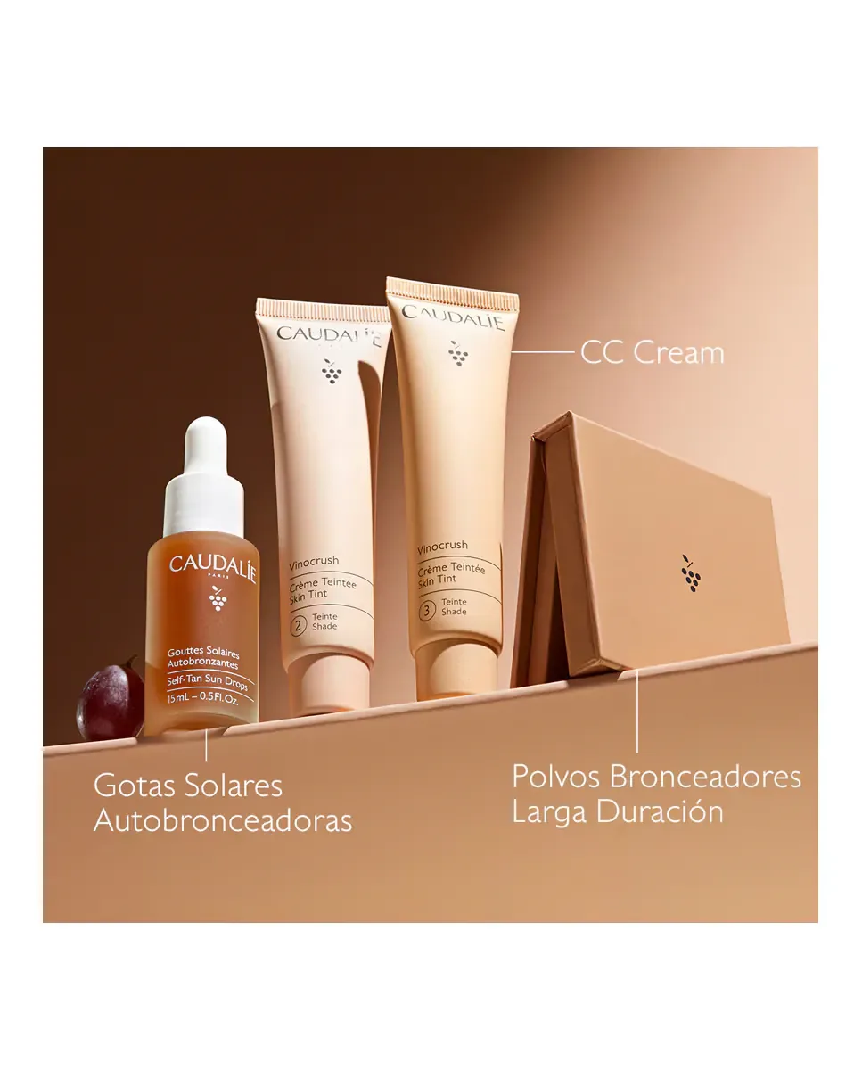 Долговременные бронзирующие пудры Vinocrush от Caudalie - это косметический продукт в форме бронзирующих пудр. Они созданы с использованием минеральных пигментов без талька и обогащены полифенолами винограда, которые действуют как антиоксиданты. Эти пудры освещают различные оттенки кожи без создания перламутрового эффекта. Они содержат 100% натуральное масло виноградных косточек, отжато холодным способом, которое обеспечивает питательные и антиоксидантные свойства. Их формула позволяет достичь естественного и здорового загара на лице в течение всего года.