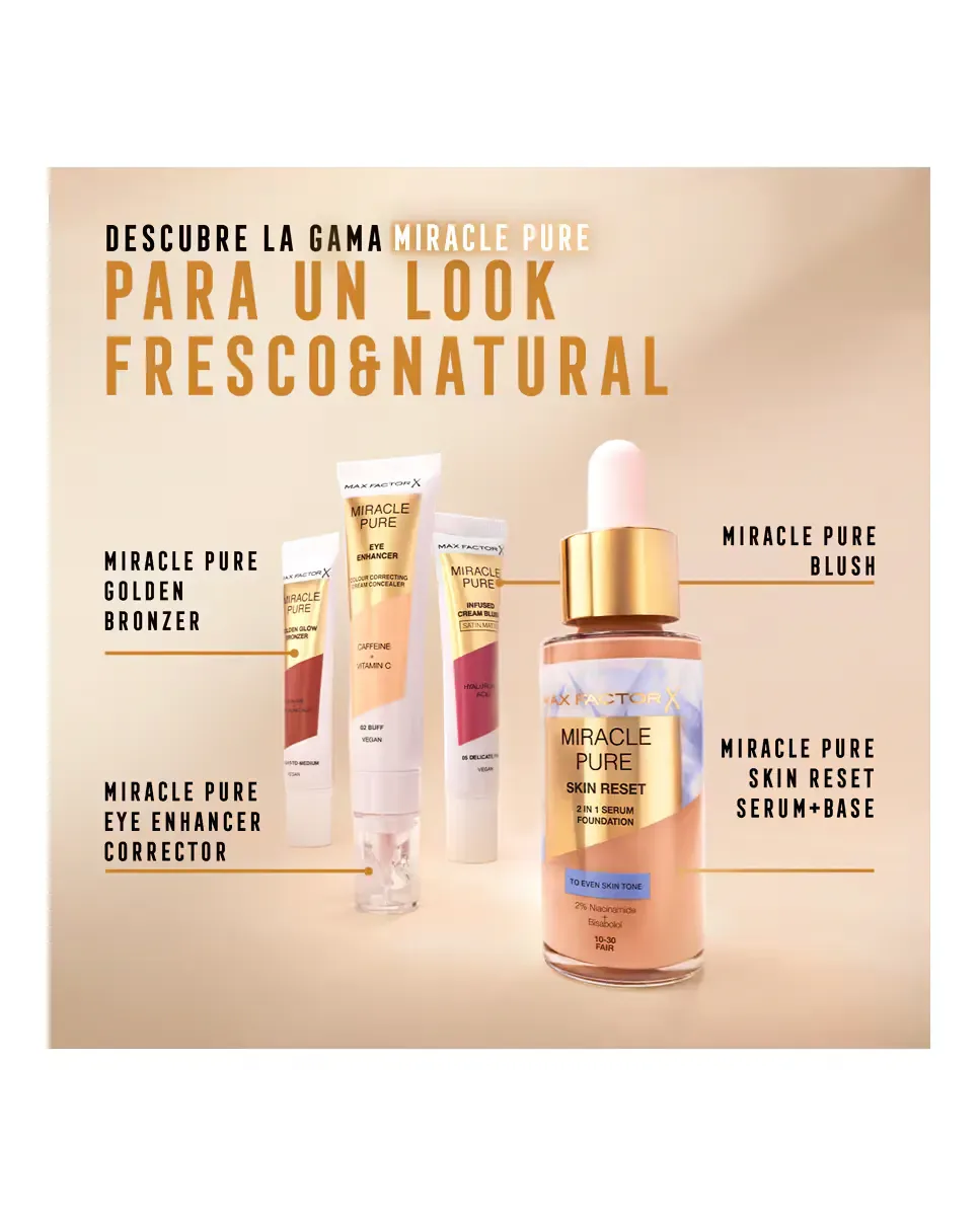 С Miracle Pure ваш макияж превращается в инструмент ухода и совершенства, обеспечивая вашей коже сияние и здоровье. Добавьте яркий и стойкий оттенок с румянами Miracle Pure Blush от Max Factor. Эти легкие и легко наносимые румяна созданы, чтобы подарить насыщенный цвет и сияющий финиш, который держится весь день, с элегантным сатиново-матовым блеском. Их веганская формула обогащена увлажняющим комплексом, включающим гиалуроновую кислоту и сквалан, обеспечивая глубокое увлажнение и здоровое сияние вашей кожи. Исследуйте нашу эксклюзивную палитру из 7 оттенков, которые варьируются от нежного сияния до сатиново-матового финиша, подходя для всех тонов кожи. Эти универсальные оттенки не только подчеркивают черты лица, но и позволяют добавить объем и контур. Вы можете сочетать их с бронзером Miracle Pure для идеально оформленного и сияющего результата.
