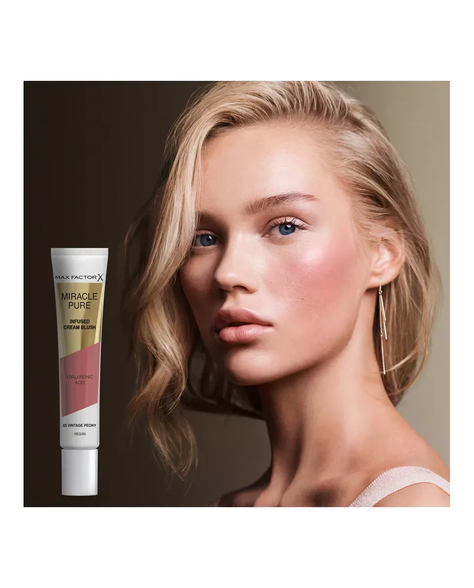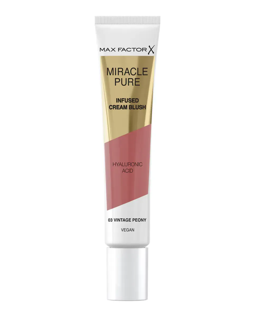 Румяна Miracle Pure Blush от Max Factor - это румяна, которые ухаживают за кожей и защищают ее. Их формула на 100% веганская и включает такие ингредиенты, как гиалуроновая кислота, сквален и увлажняющий комплекс. Они придают свежий и долгосрочный сияющий эффект. Этот продукт позволяет слегка и естественно наполнить и увлажнить лицо. Цвета яркие и пигментированные, легко растушевываются. Обеспечивает сияющий и естественный финиш с долгим эффектом, улучшая внешний вид кожи.