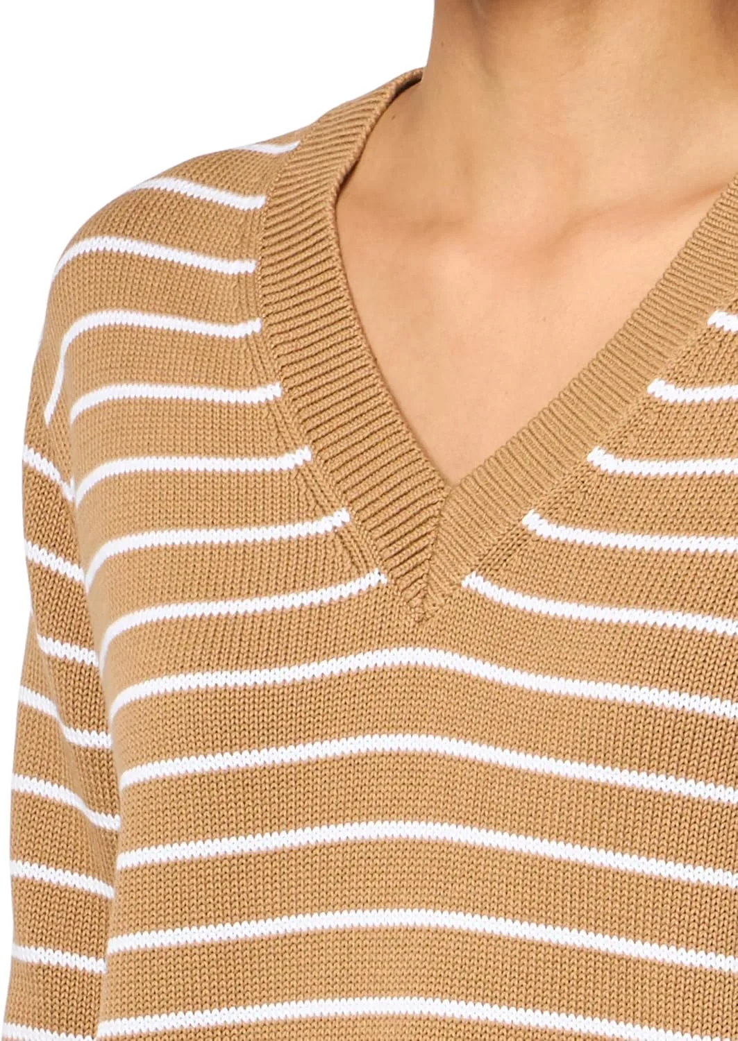 Укороченная футболка в полоску с V-образным вырезом и узкими рукавами.