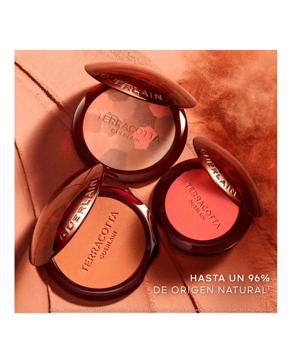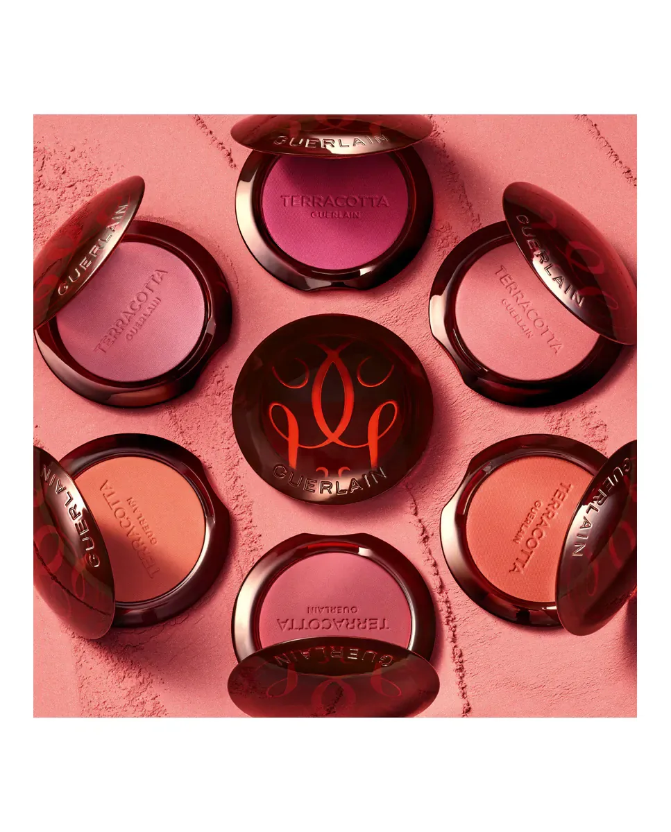 Румяна Terra 25 Blush от Guerlain - это легкие порошковые румяна, которые сливаются с кожей, обеспечивая регулируемый и естественный результат. Их пигмент Terracotta смягчает яркие оттенки, позволяя идеально интегрироваться с тоном кожи. Формула содержит 90% ингредиентов природного происхождения, что обеспечивает прозрачность, подчеркивающую скулы деликатным цветом, вызывая ощущение свежести щек после пребывания на свежем воздухе. Легкая текстура продукта обеспечивает длительный комфорт и подчеркивает естественный тон кожи с вуалью цвета, которую можно регулировать. Креативный директор по макияжу Guerlain разработала линию из 6 цветов, отражающих естественные оттенки земли, представив новый мини-формат культовой пудреницы Terracotta. В эту коллекцию входят 3 оттенка с 2 степенями интенсивности каждый, адаптированные к разным тонам кожи и потребностям.