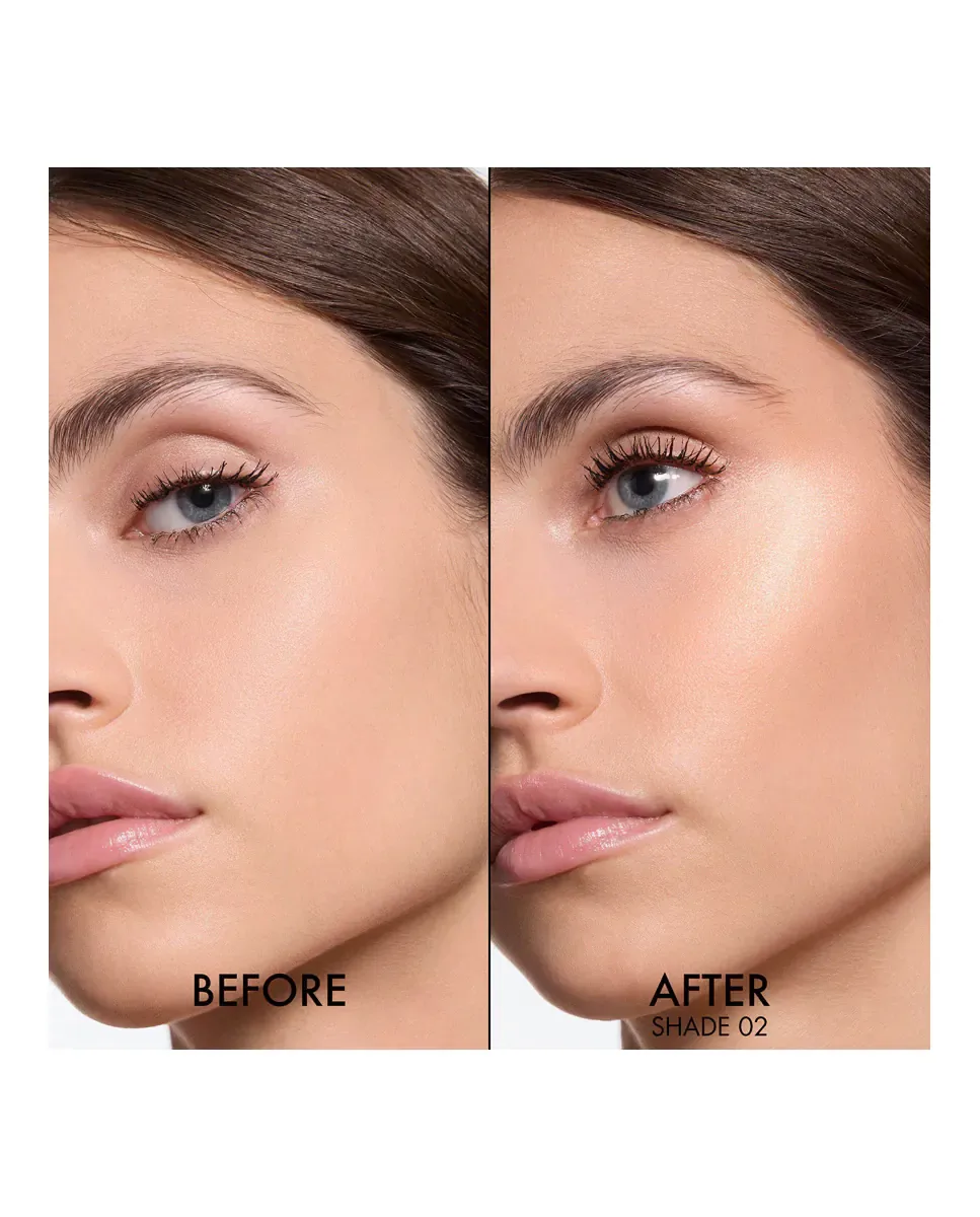 Хайлайтер Dior Forever Glow Luminizer - это унисекс продукт красоты, который сочетает в себе сияние и уход за кожей благодаря своей формуле с гиалуроновой кислотой. Этот хайлайтер предлагает три вида финиша: Halo, который обеспечивает кристальное сияние; Strobe, который демонстрирует двухцветные отражения; и Sequin, который создает ослепительный образ. Его текстура состоит из перламутровых микрочастиц в прозрачной гелевой основе, что позволяет ему сливаться с кожей и отражать свет. Этот хайлайтер обладает длительным эффектом и представлен в серебристом дизайнерском футляре, украшенном инициалами "CD" Кристиана Диора. Его можно наносить на лицо или тело, используя пальцы или кисть, на таких участках, как скулы, переносица и декольте.