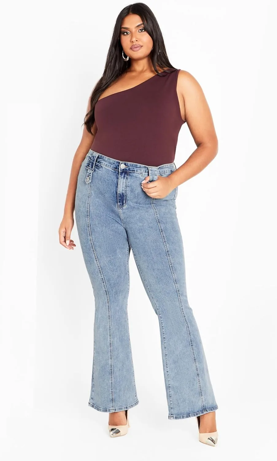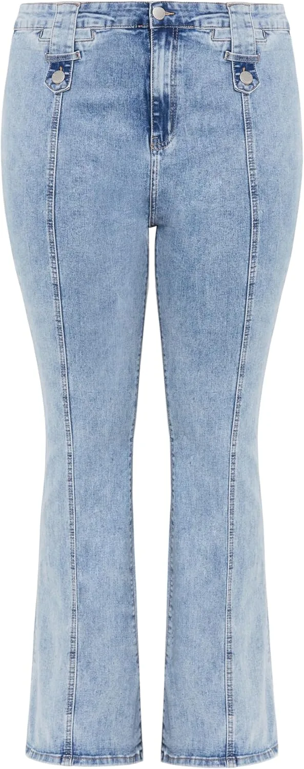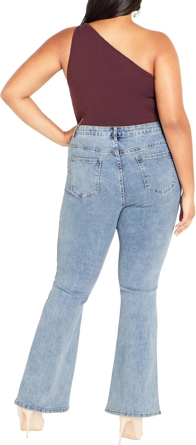 Джинсы с высокой посадкой: Подчеркните свой стиль с помощью джинсов с высокой посадкой, которые выгодно подчеркнут вашу фигуру и обеспечат надежную, модную посадку для любого случая. Джинсы расклешенного кроя: Насладитесь классическим силуэтом джинсов расклешенного кроя, который идеально сбалансирует ваши пропорции и прекрасно сочетается с любой обувью. Эластичная ткань: Наслаждайтесь комфортом в течение всего дня благодаря эластичному дениму, который движется вместе с вами, сохраняя при этом свою модную форму и стиль. Универсальные задние карманы: Благодаря удобным задним карманам все необходимое всегда будет под рукой, что добавит функциональности и стиля вашим любимым джинсам. Крой для пышных форм: City Chic переосмысливает понятие посадки одежды. Мы не просто расширяем размерный ряд, City Chic создает одежду специально для женщин с пышными формами. Доступные размеры: от 12 до 26.