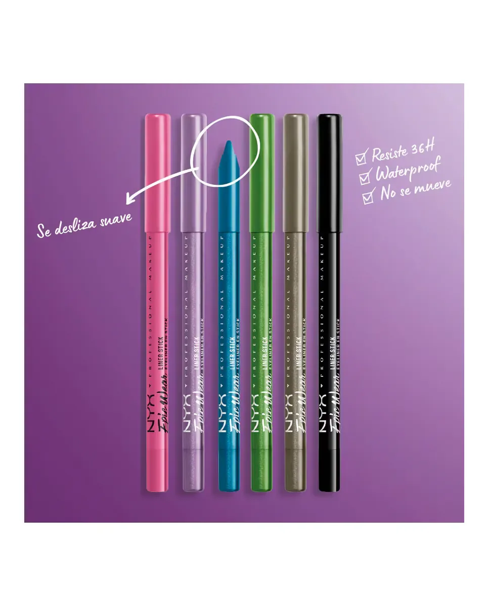 Карандаш для глаз Epic Wear Liner Sticks от NYX Professional Makeup обеспечивает до 36 часов стойкого водо- и смазываемого цвета. Сохраняет свою интенсивность со временем. Этот карандаш позволяет создавать эффекты высокой выразительности благодаря его пигментированной формуле. Имеет матовые и металлические финиши. Его легко наносить, проводя по линии ресниц или на веке глаза для создания графичного подводки. Можно заточить любым точилкой для маленьких карандашей, что упрощает его использование и уход. Это универсальный продукт.