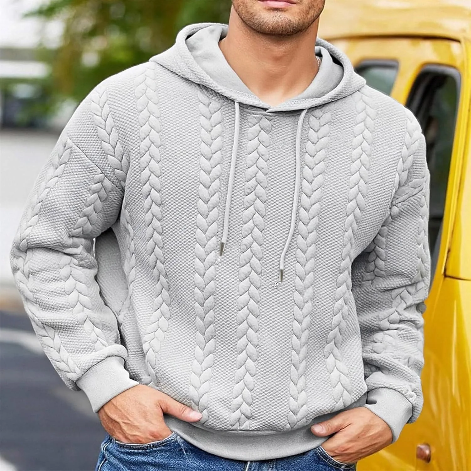 Мужской худи с капюшоном на шнурке и карманом