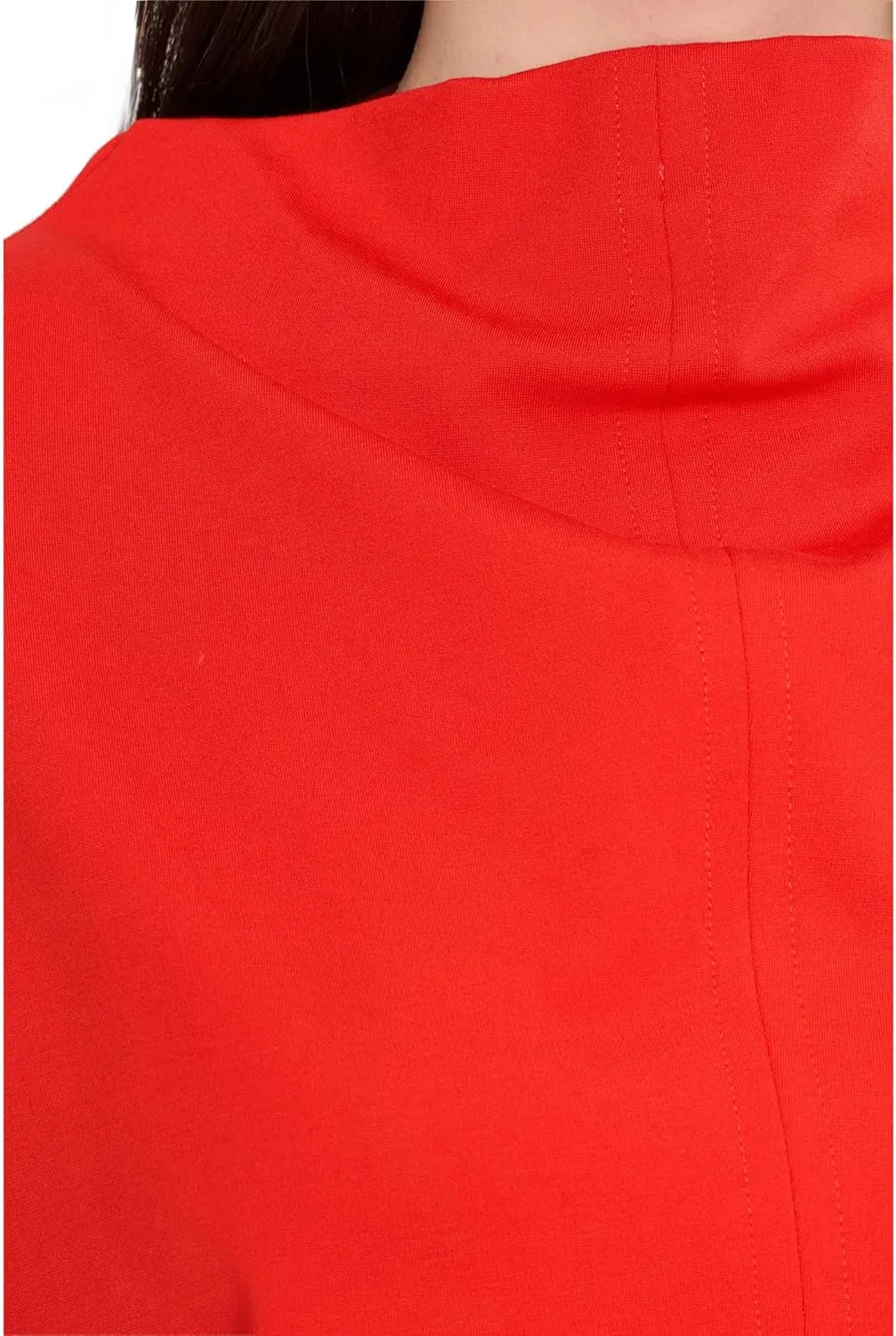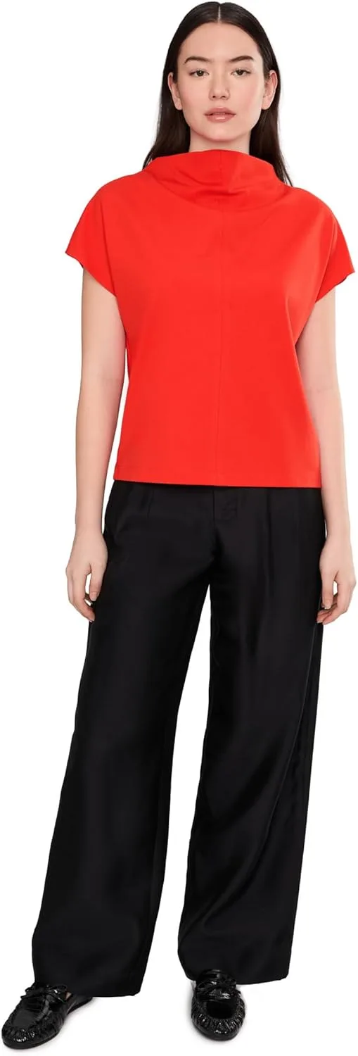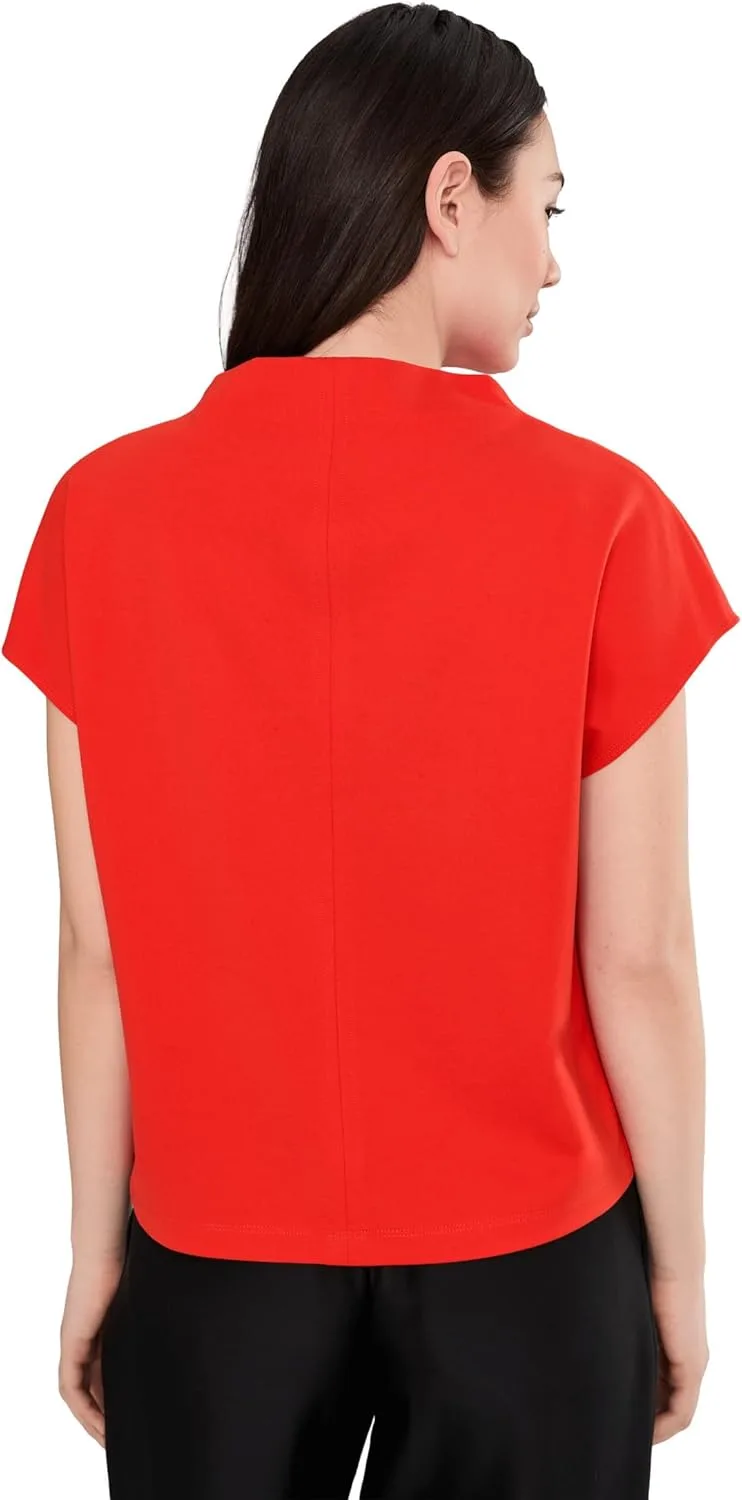 Этот топ с высоким драпированным вырезом, короткими рукавами-крылышками и свободным, объемным кроем выполнен из мягкой и уютной ткани понте.