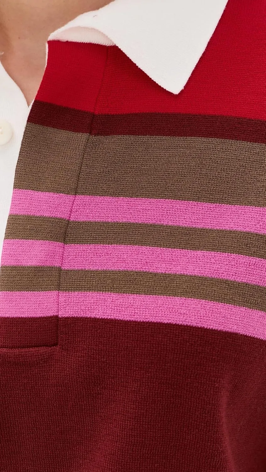 Полосатый узор, ребристая отделка, частично обтянутая пуговицами планка.