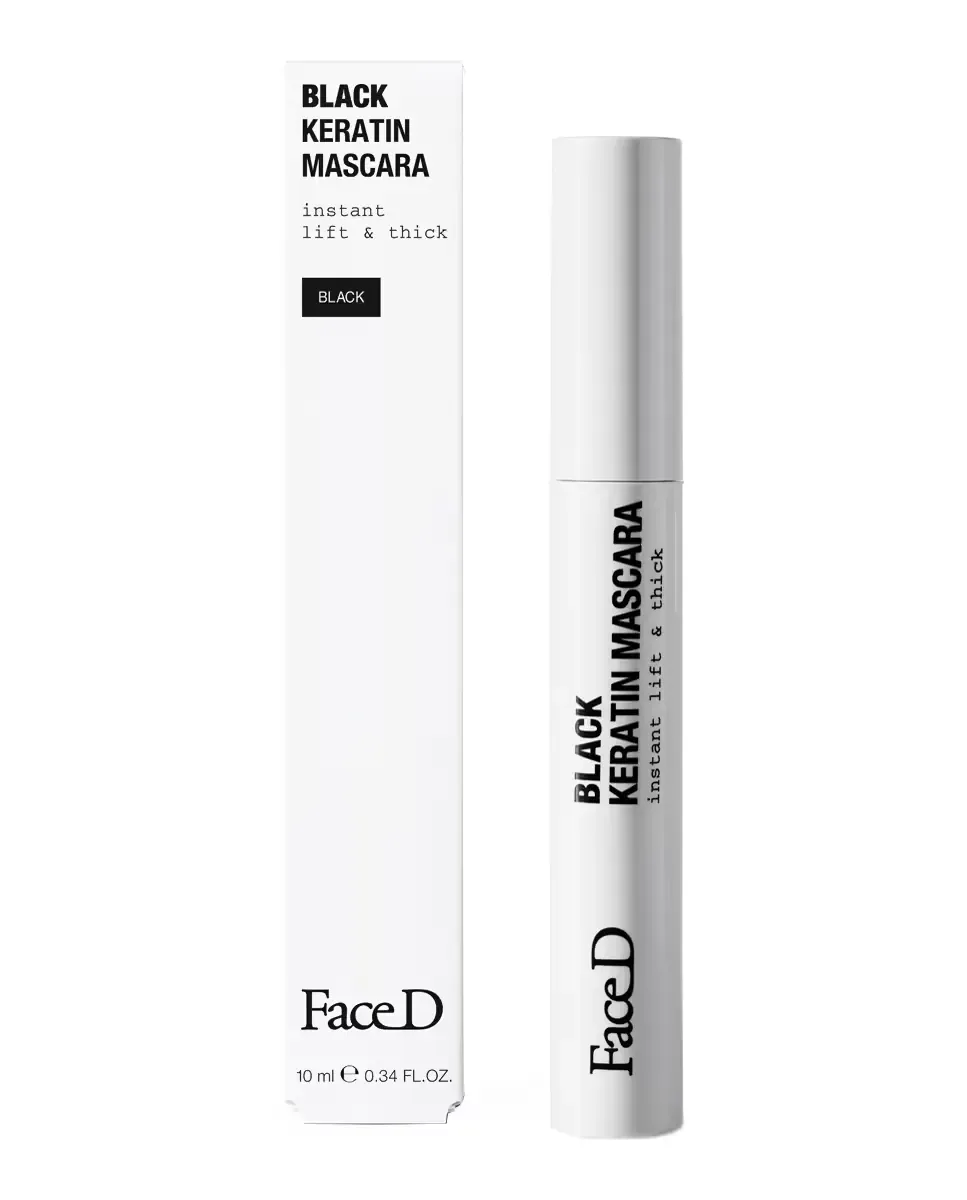 Тушь для ресниц с черным кератином от Face D сочетает уход за кожей с макияжем. Она предлагает объемную и лифтинговую формулу, стойкую к воде. Обогащена растительным кератином, который утолщает и укрепляет ресницы, способствуя их естественной прочности. Содержит экстракт дрожжей, который обеспечивает увлажнение и питание. Ее конусная силиконовая щеточка захватывает, поднимает и завивает ресницы от корня до кончика, гарантируя точное и равномерное нанесение. Щетинки на кончике щеточки подчеркивают и выявляют самые маленькие ресницы как на верхнем, так и на нижнем веке, создавая интенсивный взгляд с четкими и объемными ресницами. Этот продукт офтальмологически протестирован и подходит пользователям контактных линз.