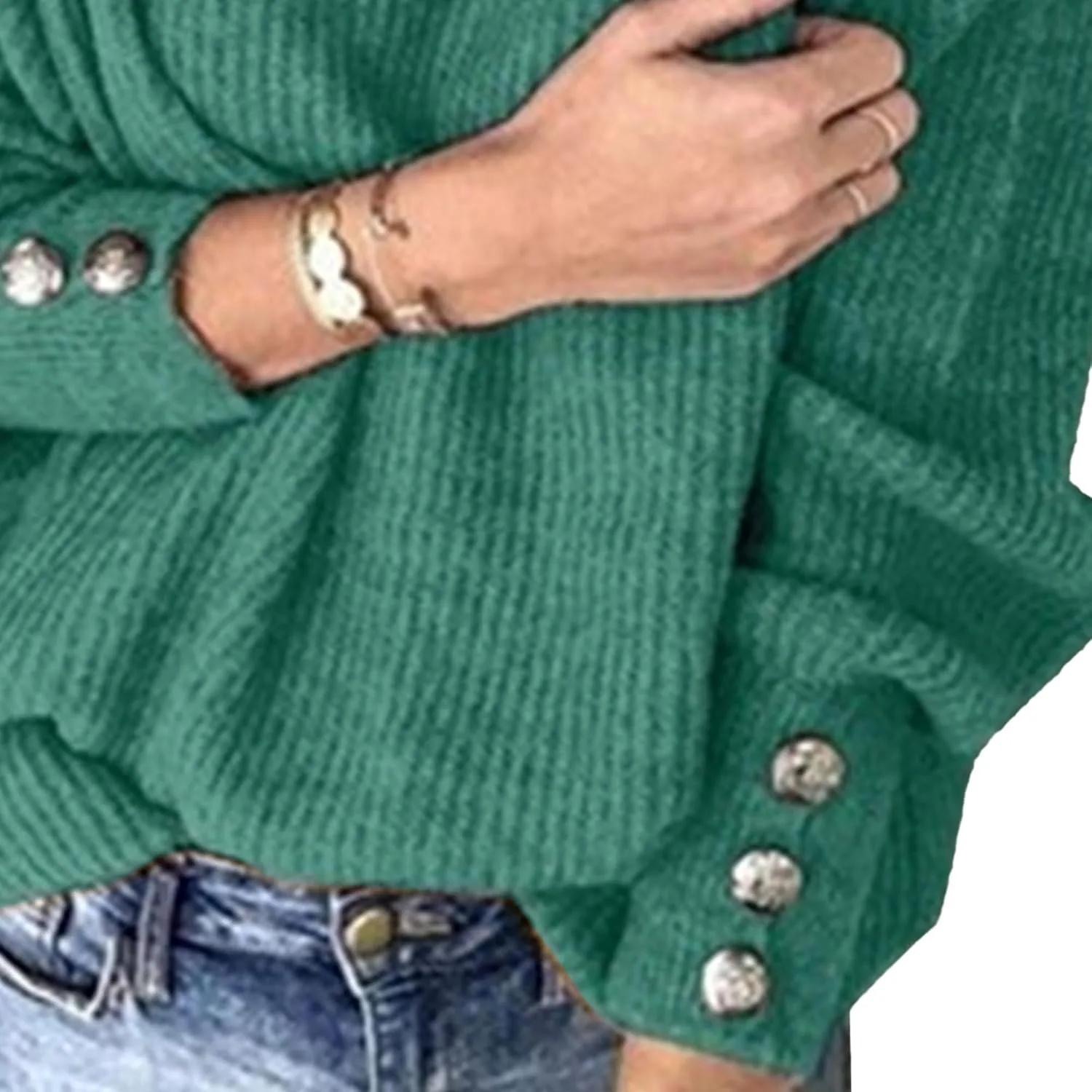Особенности: Этот женский свитер оверсайз имеет свободный крой, выполнен в стиле пуловера, связан крупными нитками, имеет высокий воротник, манжеты на пуговицах и однотонную расцветку. Незаменимый осенний свитер для женщин, который добавит тепла и стиля вашему образу, что делает его универсальным выбором для любого случая.