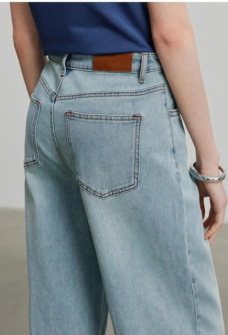 Эти свободные джинсы с высокой талией сочетают в себе комфорт и привлекательный силуэт, доступны в больших и очень больших размерах, чтобы удовлетворить потребности разных типов фигуры; они сочетают в себе повседневный деним с элементами, удобными для поездок на работу.
