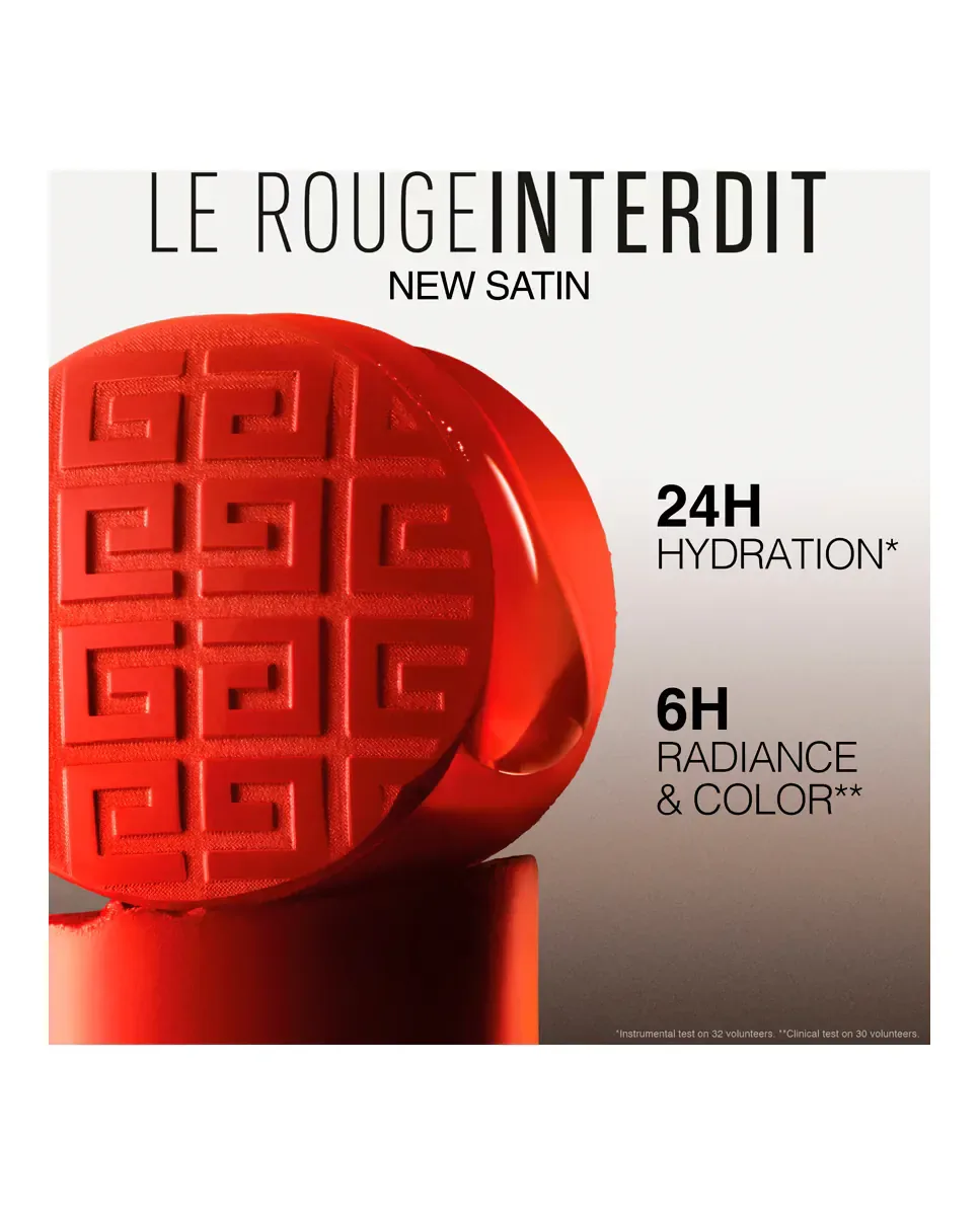 Le Rouge Interdit Satin de Givenchy - это помада, которая обеспечивает сияющий сатиновый финиш и интенсивную стойкую пигментацию. Ее формула содержит 90% ингредиентов натурального происхождения, предлагая увлажнение на 24 часа и способствуя разглаживанию и заполнению губ благодаря гиалуроновой кислоте и маслу ши. Представлена палитра из 10 оттенков, вдохновленных коллекциями высокой моды Maison, каждый из которых обладает высокой покрывающей способностью и адаптируется к различным тонам кожи. Дизайн включает черный кожаный футляр с монограммой 4G, превращая его в аксессуар высокой моды. Формула также обеспечивает мгновенное и длительное сияние.
