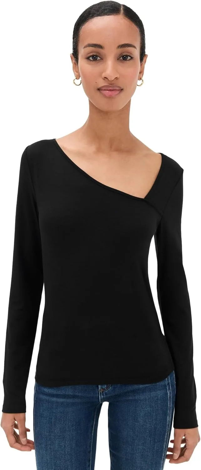 Этот топ с длинными рукавами, выполненный из мягкого, струящегося трикотажа, имеет асимметричный вырез и боковые складки, создающие элегантный, женственный силуэт. Классический черный цвет делает топ Leonna универсальной вещью, которая идеально подходит как для дневного, так и для вечернего образа.