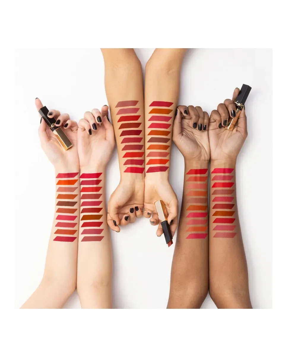 Помада Rouge Pur Couture The Slim от Yves Saint Laurent имеет матовое покрытие в стиле кожи. Ее квадратная форма позволяет точно и без усилий наносить продукт, облегчая создание контура губ с максимальной четкостью. Формула отличается высокой пигментацией, обеспечивая насыщенный цвет и полное покрытие, которое держится в течение всего дня, гарантируя комфорт. Гибкая текстура адаптируется к губам, обеспечивая легкое и удобное ощущение. Вдохновленная высокой модой, эта помада универсальна для разных случаев. Она представлена в черно-золотом футляре, отражающем элегантность бренда. Дизайн включает угловой наконечник, который позволяет точно наносить помаду на арку Купидона и контуры губ, обеспечивая яркое и равномерное покрытие с первого применения.