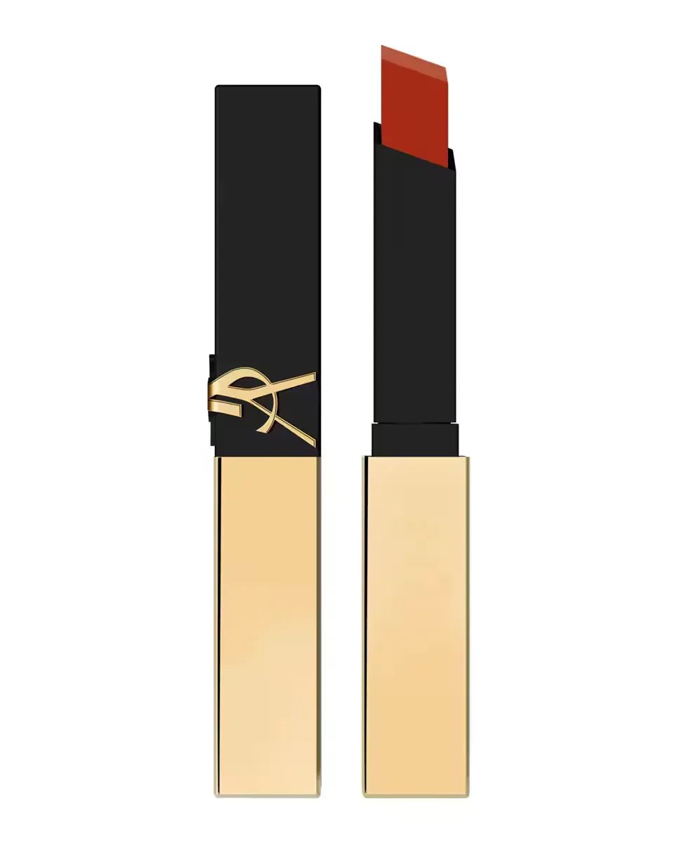 Помада Rouge Pur Couture The Slim от Yves Saint Laurent имеет матовое покрытие в стиле кожи. Ее квадратная форма позволяет точно и без усилий наносить продукт, облегчая создание контура губ с максимальной четкостью. Формула отличается высокой пигментацией, обеспечивая насыщенный цвет и полное покрытие, которое держится в течение всего дня, гарантируя комфорт. Гибкая текстура адаптируется к губам, обеспечивая легкое и удобное ощущение. Вдохновленная высокой модой, эта помада универсальна для разных случаев. Она представлена в черно-золотом футляре, отражающем элегантность бренда. Дизайн включает угловой наконечник, который позволяет точно наносить помаду на арку Купидона и контуры губ, обеспечивая яркое и равномерное покрытие с первого применения.