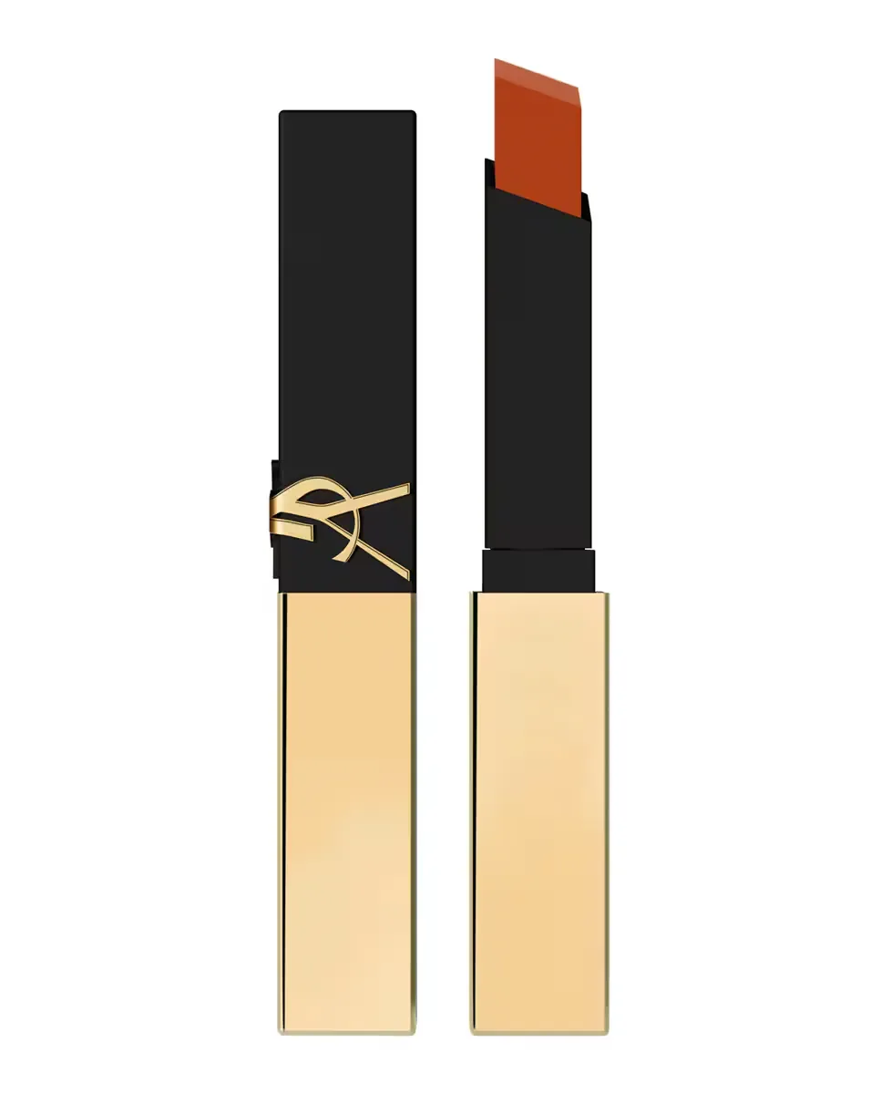 Помада Rouge Pur Couture The Slim от Yves Saint Laurent имеет матовое покрытие в стиле кожи. Ее квадратная форма позволяет точно и без усилий наносить продукт, облегчая создание контура губ с максимальной четкостью. Формула отличается высокой пигментацией, обеспечивая насыщенный цвет и полное покрытие, которое держится в течение всего дня, гарантируя комфорт. Гибкая текстура адаптируется к губам, обеспечивая легкое и удобное ощущение. Вдохновленная высокой модой, эта помада универсальна для разных случаев. Она представлена в черно-золотом футляре, отражающем элегантность бренда. Дизайн включает угловой наконечник, который позволяет точно наносить помаду на арку Купидона и контуры губ, обеспечивая яркое и равномерное покрытие с первого применения.