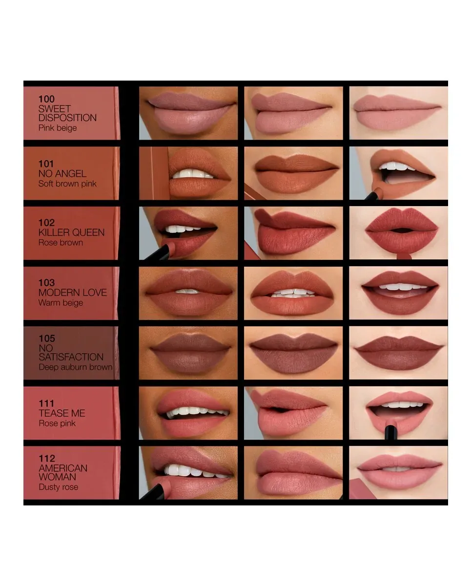 Помада Powermatte Lipstick от NARS имеет матовую формулу, которая легко наносится на губы, обеспечивая насыщенный цвет. Ее стойкость достигает до 10 часов, гарантируя долговечный результат. Включает Power Pigment Complex, который сочетает чистые пигменты с фиксирующими цвет компонентами, обеспечивая полностью матовое покрытие и легкое ощущение при нанесении. Доступна в 15 оттенках, позволяя выбрать тот, который лучше всего подходит для каждого стиля. Для точного нанесения можно использовать кончик помады для очерчивания арки купидона и плоскую часть для покрытия нижней губы. Рекомендуется закрывать крышку после каждого использования для сохранения качества продукта.