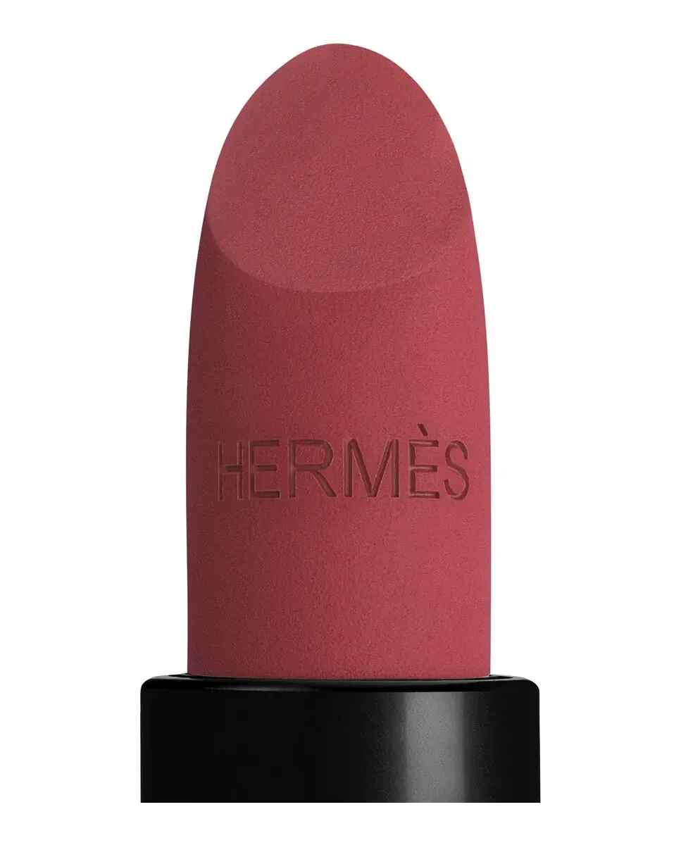 Матовая губная помада Rouge Hermès входит в коллекцию ограниченного выпуска, представленную Hermès Beauté к осенне-зимнему сезону 2024 года. Эта помада предлагает прозрачный бордовый оттенок, который превращается в вуаль винного цвета на губах. Ее текстура с легким матовым финишем обеспечивает комфорт и покрытие от легкого до среднего, позволяя легко регулировать интенсивность в соответствии с предпочтениями. Формула включает увлажняющий комплекс с экстрактом белой шелковицы, обеспечивая длительное увлажнение. Упаковка помады, разработанная Пьером Харди, украшена экслибрисом Hermès и поставляется в тканевом мешочке внутри характерной коробочки. Эта помада перезаправляемая, хотя оттенки ограниченных выпусков недоступны отдельно в виде сменных блоков, что позволяет использовать стержень с другими оттенками из линии.