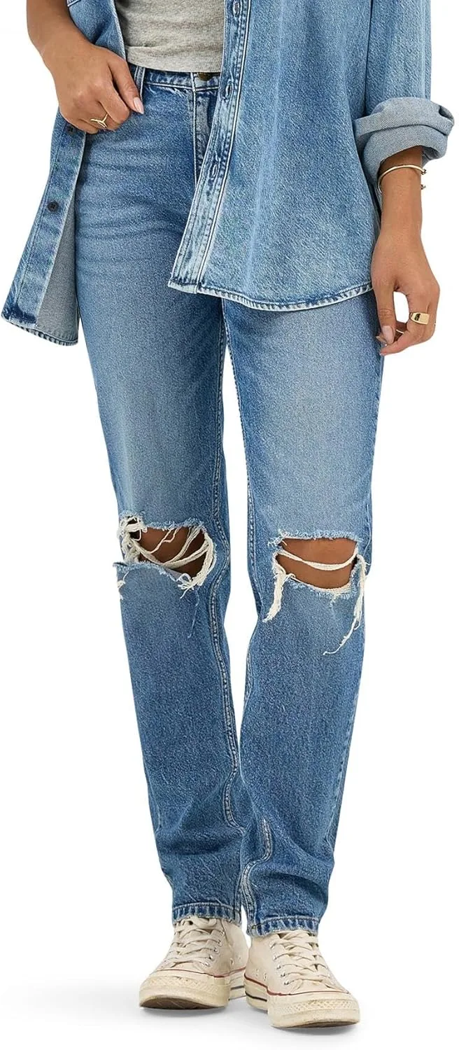 Прямые штанины. Эти джинсы в стиле 90-х воплощают ретро-шик и непринужденную элегантность 1990-х. Стильные и изысканные, они имеют стандартный крой, среднюю посадку и идеально подходят как для свободного, так и для облегающего силуэта.