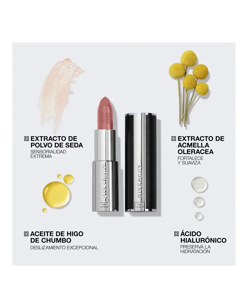 Le Rouge Interdit Intense Silk от Givenchy - это перезаряжаемая губная помада, представленная в кожаном футляре с эмблемой 4G бренда. Ее текстура плавно скользит по губам, обеспечивая сияющий полуматовый финиш. Обогащенная сферами гиалуроновой кислоты и экстрактом Acmella oleracea, эта формула мгновенно разглаживает и удерживает влагу в течение 24 часов. Яркий цвет держится долго, оставаясь насыщенным до 12 часов. Представлена в 23 насыщенных оттенках, объединенных в шесть цветовых семейств. Среди активных ингредиентов - экстракт шелка, придающий сенсорную текстуру, и масло опунции, способствующее поддержанию увлажненности. Эта губная помада сочетает в себе яркий цвет и максимальный комфорт.