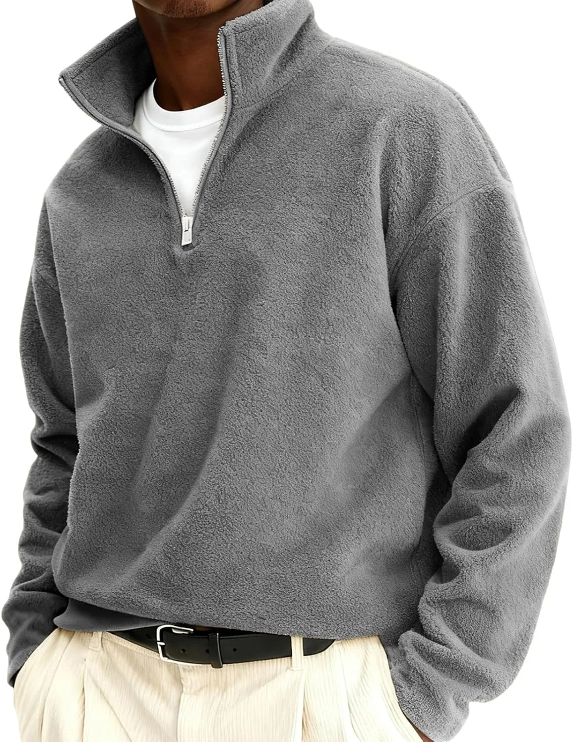Застежка на четверть молнии: Благодаря универсальной застежке на четверть молнии этот свитер обеспечивает легкую регулировку температуры и удобство ношения. Молния также добавляет стильный штрих. Уютная ткань «шерпа»: этот пуловер, изготовленный из ультрамягкого, пушистого флиса «шерпа», обеспечит тепло и комфорт в прохладные зимние и осенние дни. Теплоизоляция: флисовый материал обеспечивает отличную теплоизоляцию, сохраняя тепло даже в холодную погоду. Повседневный и стильный: благодаря своему лаконичному и простому дизайну этот пуловер идеально подходит для прогулок, походов или отдыха дома. Он хорошо сочетается с джинсами, чиносами или спортивной одеждой. Прочный и долговечный: созданный для повседневной носки, высококачественный флисовый материал гарантирует, что пуловер сохранит свою мягкость и теплоту на протяжении длительного времени.