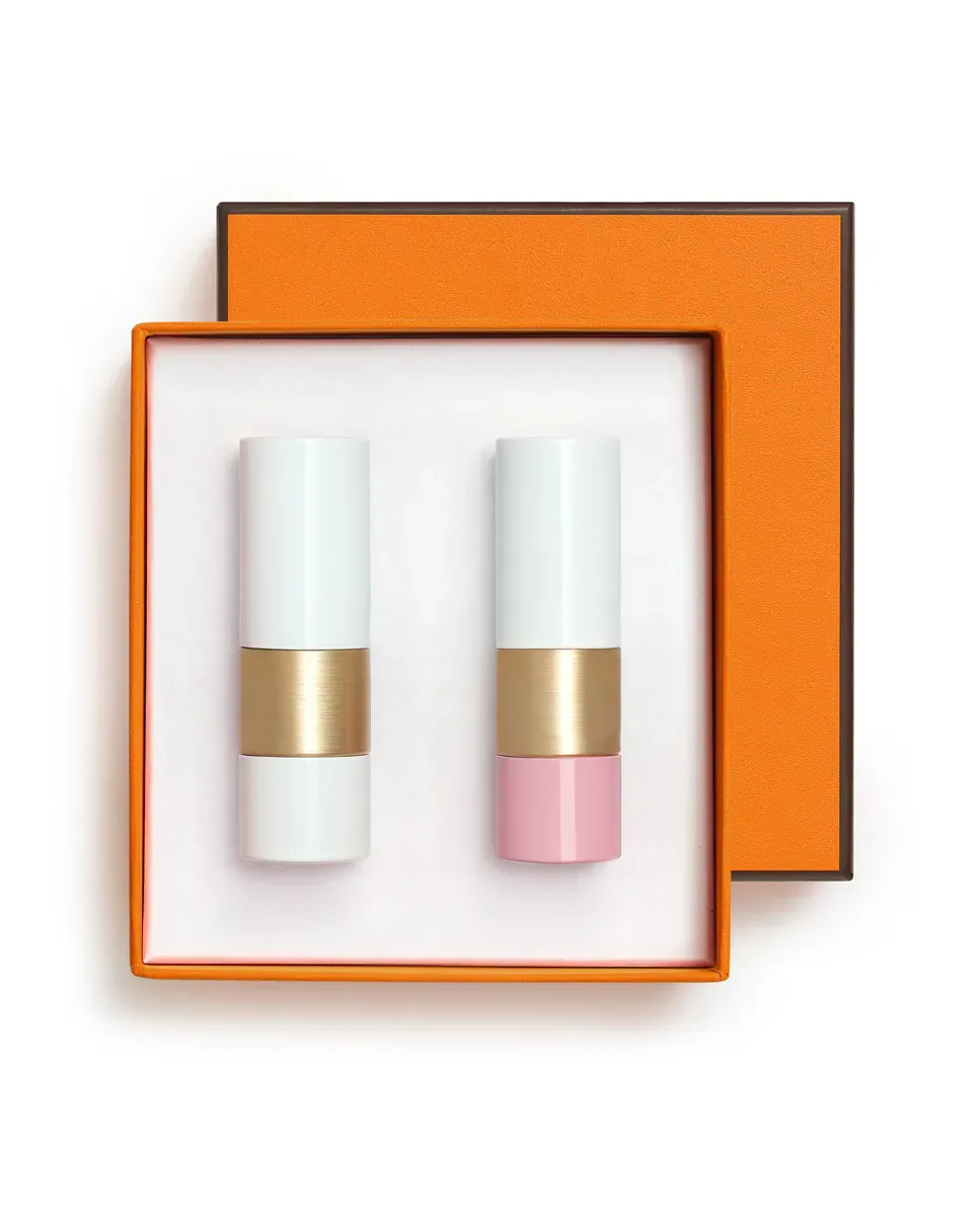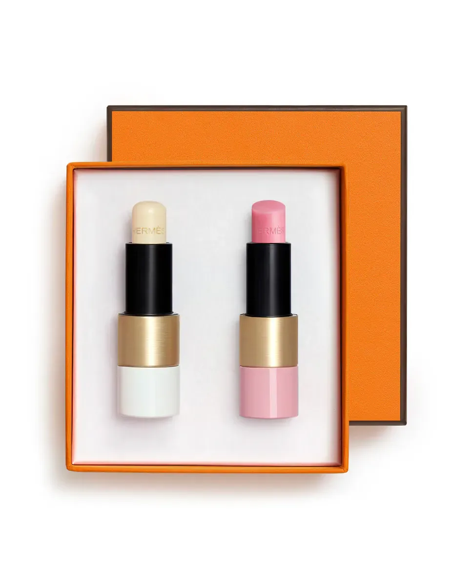 Набор состоит из двух косметических продуктов Hermès. Включает бальзам для губ Rouge Hermès, обеспечивающий полный уход с увлажняющими и смягчающими свойствами. Обладает тонкой и мягкой текстурой, с нежирным и естественным финишем, подходит для всех полов. Также содержит помаду оттенка Rose Confetti, которая обеспечивает легкий и полупрозрачный финиш, подчеркивая естественную красоту губ. Эта помада имеет деликатную текстуру с восковым эффектом, сливается с губами, придавая прозрачный розовый оттенок и сияющий блеск. Каждый продукт защищен в тканевом мешочке, а набор представлен в оранжевой коробке.